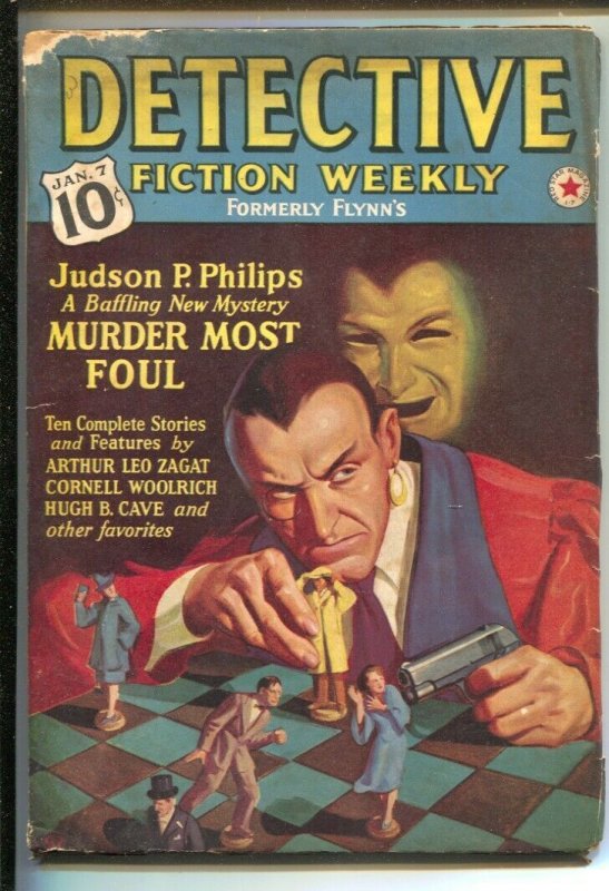 Detective Fiction Weekly 1/7/1939 --Crime cover-Pulp thrills-Cornell Woolrich...