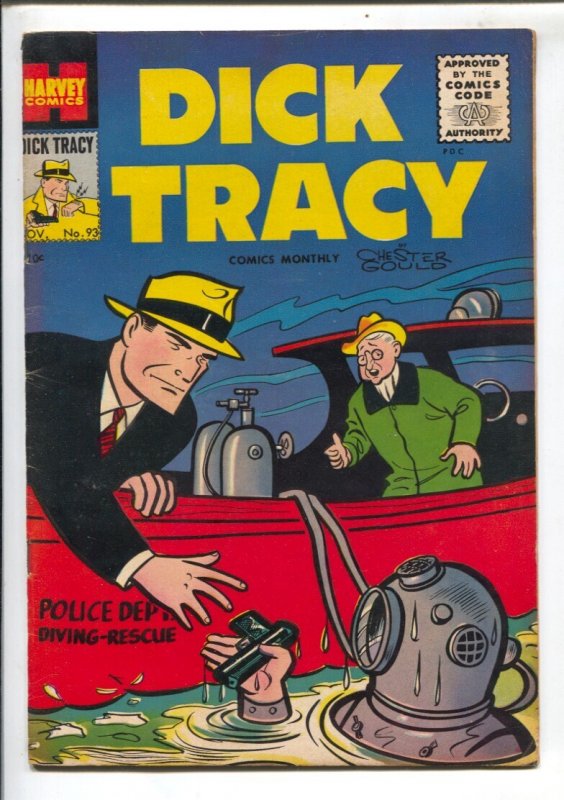 Grade: FNDick Tracy #93 1955-Harvey-Chester Gould art-crime stories-Girl Friday-deep sea diver cover-FN -Chester Gould art -Crime stories -Girl Friday appears -Deep sea diver finds evidence on cover -Brinks robbery history Grade: FN SKU: LI-105-015