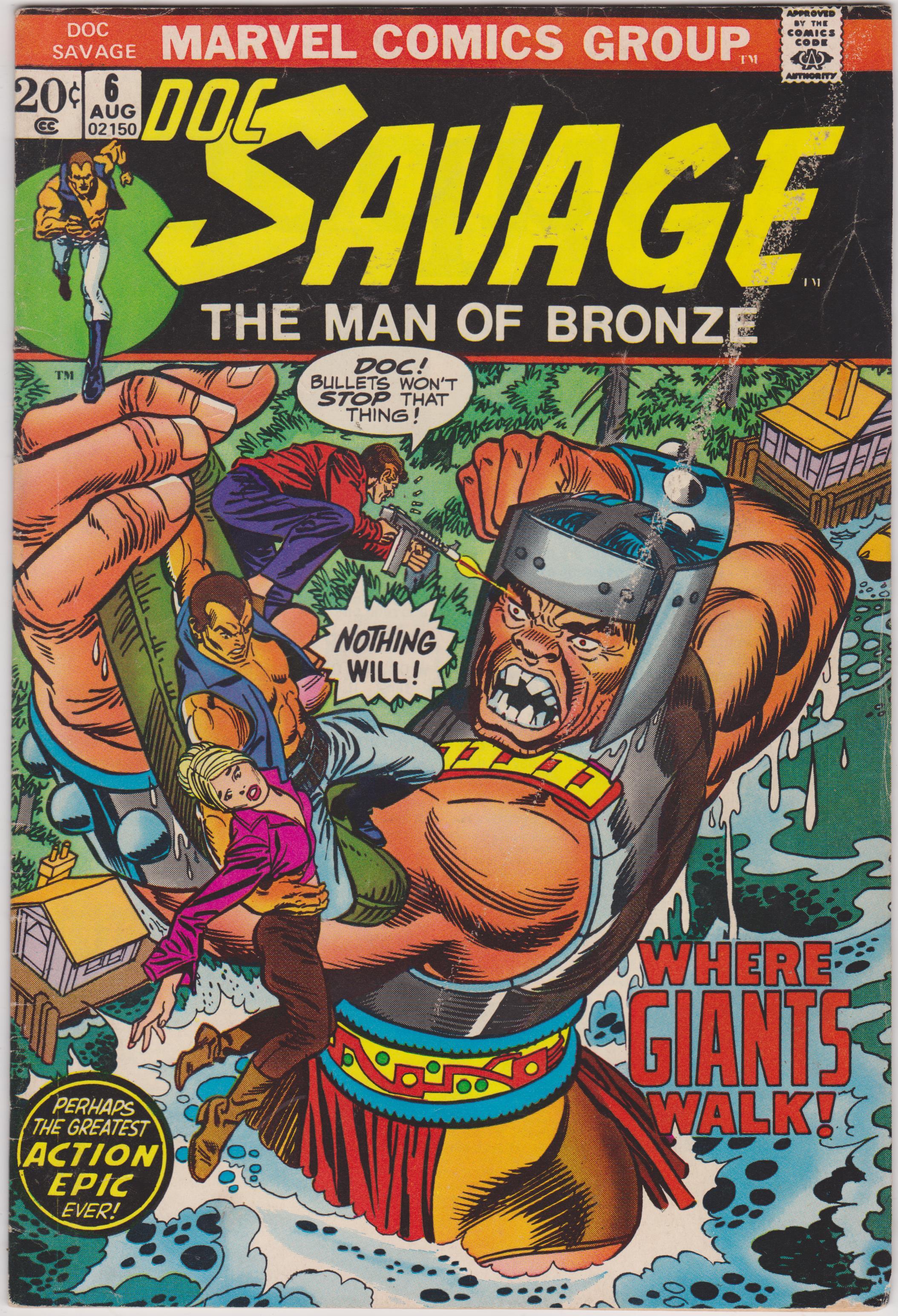 Doc Savage #6 (1973) by Marvel Comics. I have graded the comic book at VERY GOOD with the following defects: Light stress marks along the spine. The corners are rounded. Color scrape on the front cover. There is yellowing of the pages.Seller Information