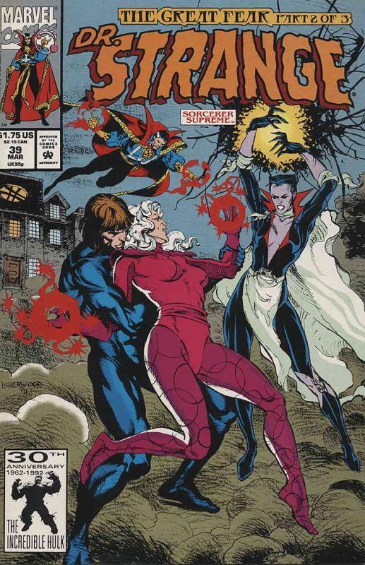 Item: Doctor Strange: Sorcerer Supreme #39 | Publisher: Marvel | Cover Date: March 1992 | Writer: Roy Thomas, Dann Thomas | Artist: Geof Isherwood | Cover Artist: Geof Isherwood | Appearances: Nightmare, Dweller in ... Read More