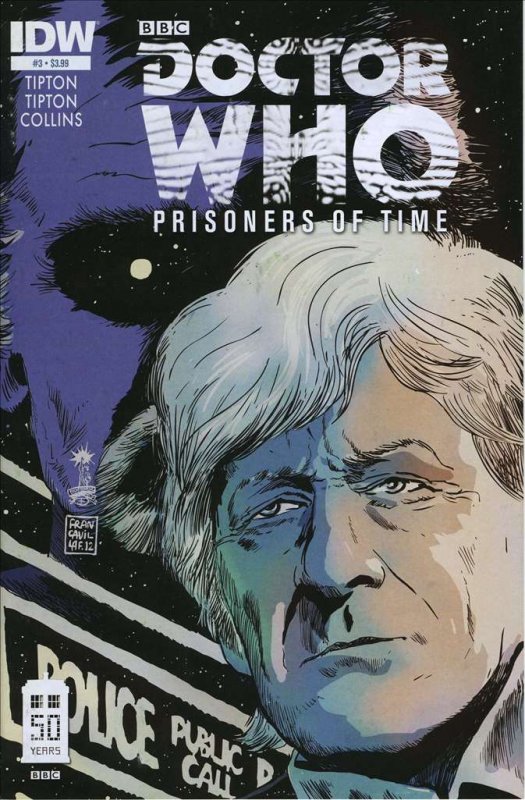 Item: Doctor Who: Prisoners of Time #3 | Publisher: IDW | Cover Date: March 2013 | Writer: David Tipton | Artist: Mike Collins | Cover Artist: Francesco Francavilla | Appearances: Doctor Who (third generation), Richard Nixon, Agent Paul, Remoraxians, Elizabeth Shaw, Sarah Jane Smith, Brigadier Alistair Gordon Lethbridge-Stewart, U.N.I.T. | Storylines: Prisoners of Time, Part 3 | With Economy shipping, each additional comic ships for just 50 cents more to customers in the USA. This listing contains a stock photo and information from ComicBase™ and © Human Computing. The stock photo is for reference only. If you would like to see a photo of the actual item, please message us prior to purchasing.Seller Information