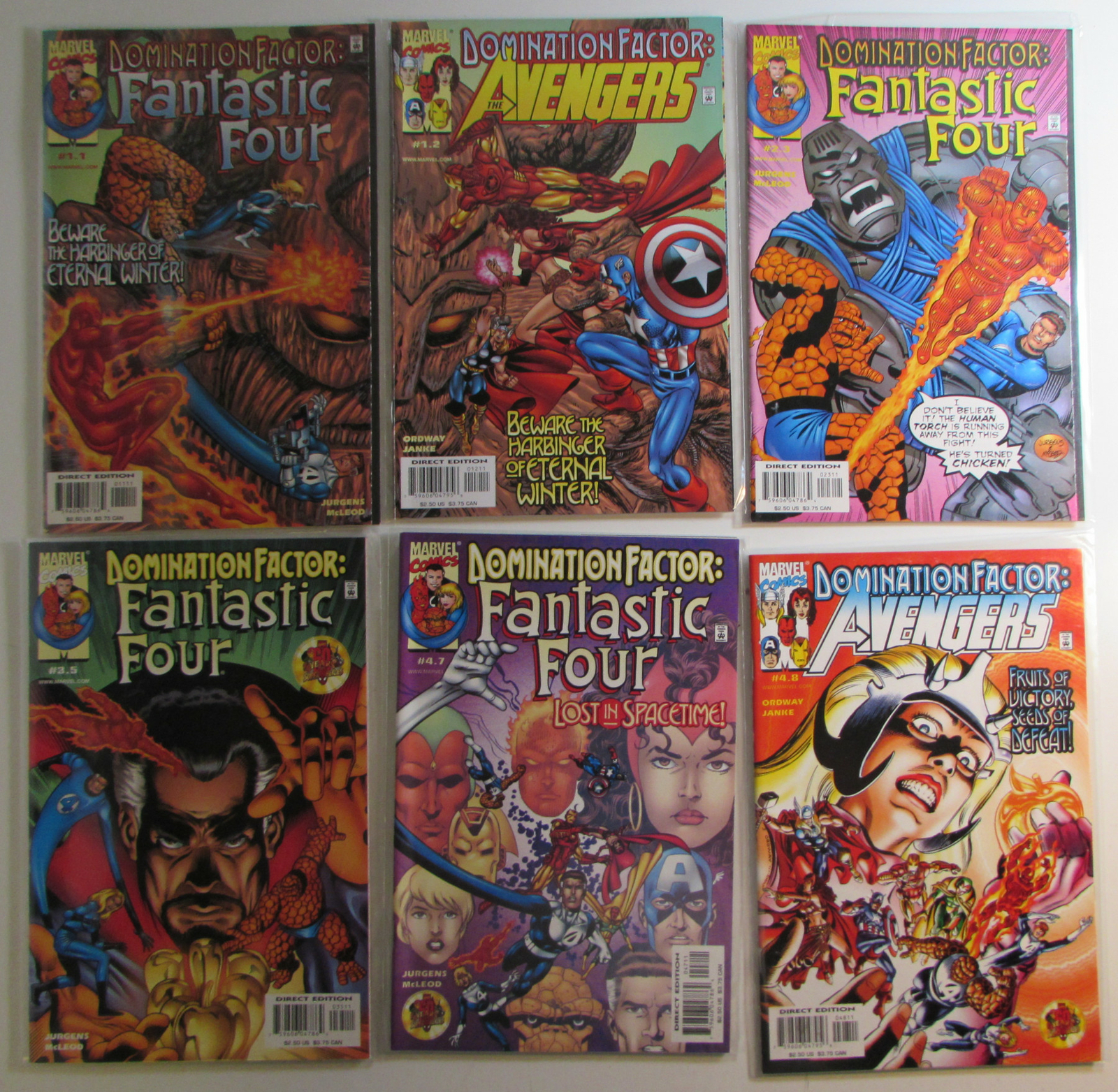Domination Factor Lot 6 #FF 1.1, 2.3, 3.5, 4.7, Avengers 1.2, 4.8 Marvel 1999