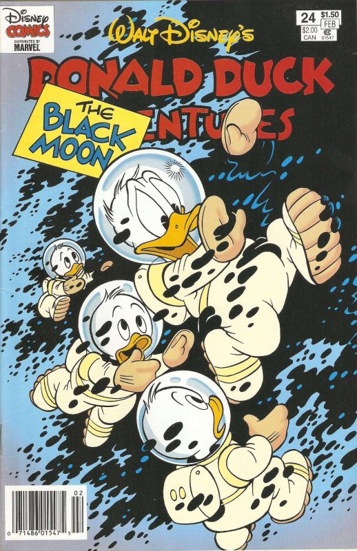 Item: Donald Duck Adventures (Gladstone) #24 (Newsstand) | Publisher: Gladstone | Cover Date: February 1994 | Writer: William Van Horn, Ingelise McCandless, Charlie Martin, Gary Gabner | Artist: William Van Horn, Sabate | Cover Artist: William Van Horn | Storylines: The Black Moon; The Talking Mailbox; No Room for Complaint | Notes: Newsstand edition; “Distributed by Marvel”on cover | With Economy shipping, each additional comic ships for just 50 cents more to customers in the USA. This listing contains a stock photo and information from ComicBase™ and © Human Computing. The stock photo is for reference only. If you would like to see a photo of the actual item, please message us prior to purchasing.Seller Information