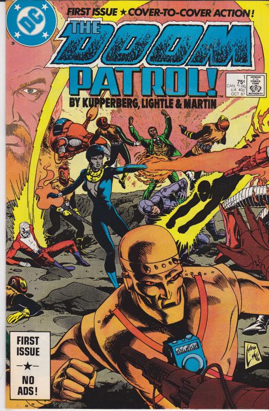 Doom Patrol #1 by DC Comics copyright 1988. I have graded the comic book, using the Overstreet Grading Guide, at FINE+ with the following defects: Couple of light stress marks along the spine. The corners are rounded. There is some light yellowing of the pages.Seller Information