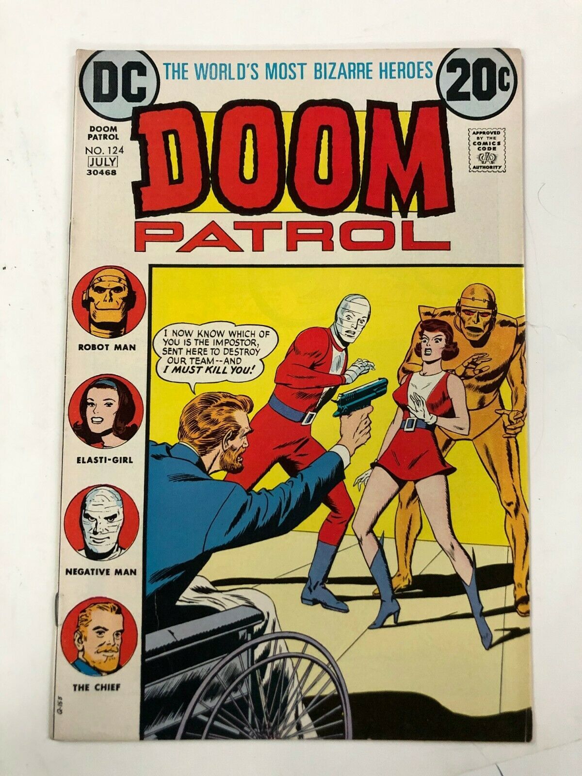 DOOM PATROL 124 VF JULY 1974 Arnold Drake, Bruno Premiani REPRINTS LAST ISSUE