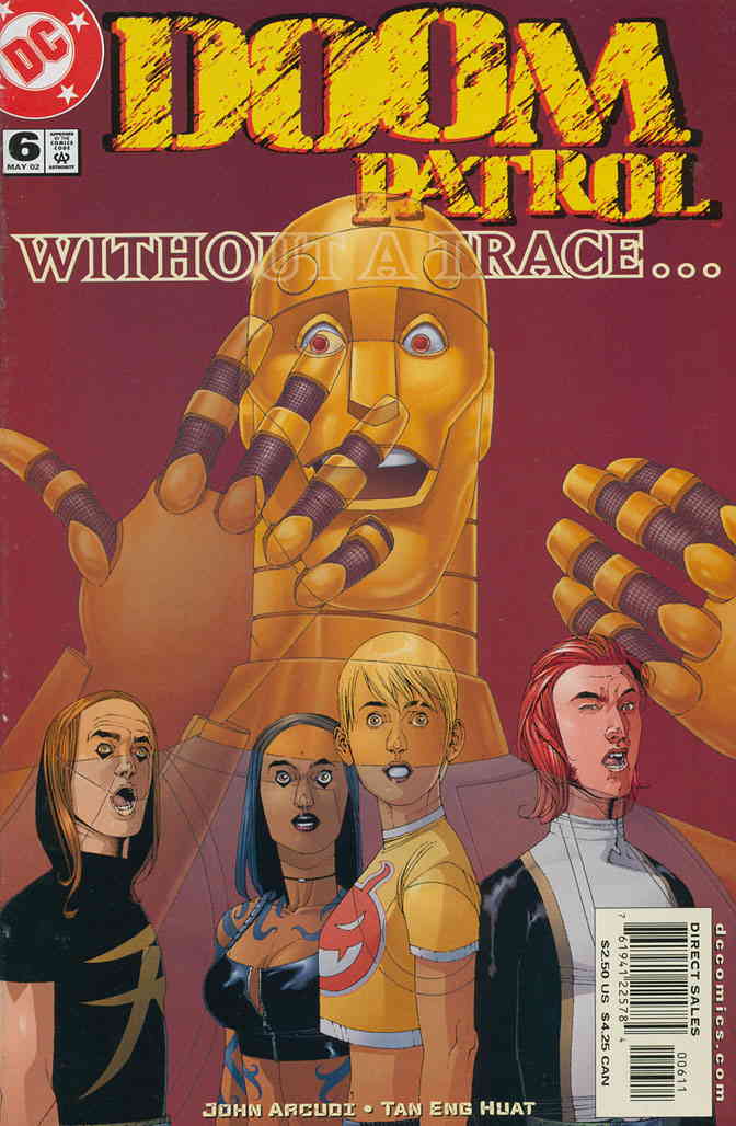 Item: Doom Patrol (3rd series) #6 | Publisher: DC | Cover Date: May 2002 | Writer: John Arcudi | Artist: Tan Eng Huat | Cover Artist: Tan Eng Huat | Appearances: Fever, Freak, Fast Forward, Kid Slick | Storylines: Dead? | Notes: Investigates disappearance of Robotman IV | With Economy shipping, each additional comic ships for just 50 cents more to customers in the USA. This listing contains a stock photo and information from ComicBase™ and © Human Computing. The stock photo is for reference only. If you would like to see a photo of the actual item, please message us prior to purchasing.Seller Information