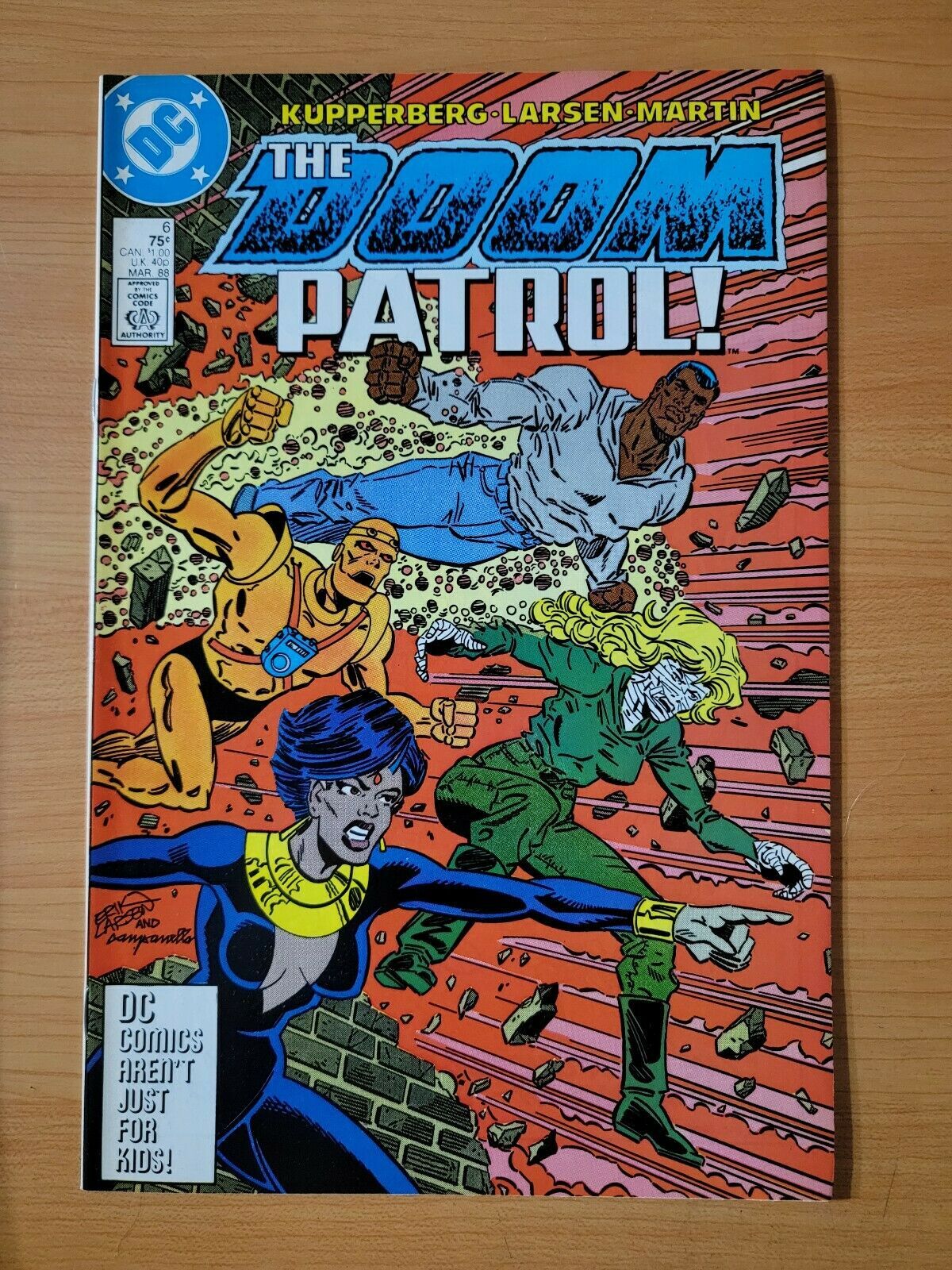 Item DescriptionDoom Patrol #6 Direct Market EditionPublisher: DC ComicsPublished: 1988Item Grade/ConditionGrade: NEAR MINTFor more information about this grade and other grades, please see our grading standards.~ WE TAKE HIGH DEFINITION PICTURES OF OUR COMICS ~ For more detail use the ZOOM Function and check them out yourself! ~Shipping Info:United States: Comic Book & Magazine Orders of all sizes, big and small ship for a flat Single Shipping ChargeInternational: We use Calculated Shipping! ~ This insures that you get the LOWEST POSSIBLE COST! ~ Please give us one business day to calculate large orders! The Calculator for Hip is pretty bad for international, contact us if you are looking to order multiple books so we can help you make it work on the back end! As a courtesy to our customers, we insure all orders over 50$ US ~ YOU DONT PAY EXTRA!Delivery TimeWe process and ship all orders within 1 business days. Once shipped, estimated U.S. transit time is 2-10 business days; international 14-21 business days.(Orders placed on Friday afternoon as well as weekends will be shipped the next business day as we do not ship on the weekends).PackingOmnomax Traders has mastered packing to ensure our orders of a "damage-free transport."Using the following methods, we have seen a nearly perfect 99% success rate for undamaged comics!Here is how our orders ship:All Orders :Bagged AND Boarded, ALWAYS NO EXCEPTIONS!Shipped in a Gemini Comic Mailer OR Tightly secured between 4x stiff pieces of corrugated cardboard (double Sandwiched)Sealed on all 4 sides with strong packing tape (Items doesn't even wiggle).:*Now this method is nearly perfect! however we have seen damage happen to items ( only once or twice a year ) ~ this is often due to bad handling by the postal service. Always remember to contact us if this happens! we are committed to quality service!*Offers History