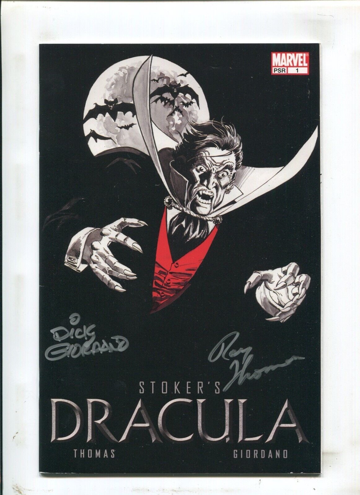 Dracula #1 - Signed Dick Giordano + Roy Thomas / Hard to Find (9.2) 2004Size: 7" x 10"This item was uploaded by ___LM___.WE COMBINE SHIPPING!!! Either wait for us to send you an invoice after you commit to buy or, if it makes you pay right away, message us back and we'll refund the excess charge. Buy as many single comic books as you want for one low flat shipping rate in the United States! International will be charged exact according to size and weight.If you have any specific questions or requests, please ask us prior to ordering and we'll get back to you as soon as we can.If there are any problems with your order whatsoever, please message us before leaving feedback and we'll be happy to work with you to fix the situation! We ship worldwide, combine purchases, and charge exact shipping. The price may vary based on size, weight, and location. If you are automatically overcharged for shipping, message us and we'll be happy to revise the invoice or refund you the excess amount. If you have any questions regarding shipping, please message us.International Buyers - Please Note:Import duties, taxes, and charges are not included in the item price or shipping cost. These charges are the buyer's responsibility.Please check with your country's customs office to determine what these additional costs will be prior to bidding or buying.Payment can be made by PayPal and credit cards directly.120,000+ items in total in my Hip store!Frequently Asked Questions:When are your operation hours?Our in office hours are Monday - Friday, 11 am - 8 pm. We are not open on weekends, so if you send us a request on Friday evening we won't get back to you until Monday afternoon. Please don't take it as us ignoring you! We will work on your request Monday and get back to you as soon as we can. Also, if you order from us on a Friday evening or Saturday morning we won't start processing your order until we open on Monday. That means on Monday it will be pulled and prepped for shipping, then picked up by the postman on Tuesday morning.When will you ship my item? The tracking hasn't moved.We realize you're eager to get your item, so if the tracking hasn't moved in a few days please don't be concerned. We give the postman a lot of packages daily, sometimes as many as 100, so he does not scan each item for us upon pickup as he says it would be too time consuming for him to do so. If you get a tracking number from us, that almost always means your item was picked up by the postman the next business day. The USPS is also imperfect. There are times when the tracking won't even show movement until it's in your area's regional distribution center. This is normal in our experience.Is the item pictured the exact one for sale?Yes! We don't use stock images and go through great lengths to scan or photograph everything we list. The item pictured is exactly what you should receive UNLESS it is a fixed price listing with multiple items available.Can you issue a COA?We can, upon request. Please make sure you leave us a note while checking out and shoot us a message immediately after requesting one, just to be sure.How do you grade?Grading is very subjective, but we are professionals with decades of grading experience between us who try the best we can to accurately describe the condition of the items we list.Anthony is an Overstreet Comic Book Price Guide AdvisorPlease see the grading chart below for a breakdown of how we grade:NOTE: We don't grade any raw books higher than 9.2, as once you go higher than that grading gets really subjective. If you buy a NM book from us, it may very well be higher than 9.2 but we play it safe and grade conservatively. 9.2 NM Near Mint 9.0 VF/NM Very Fine/Near Mint 8.5 VF+ Very Fine+ 8.0 VF Very Fine 7.5 VF- Very Fine- 7.0 FN/VF Fine/Very Fine 6.5 FN+ Fine+ 6.0 FN Fine 5.5 FN- Fine- 5.0 VG/FN Very Good/Fine 4.5 VG+ Very Good+ 4.0 VG Very Good 3.5 VG- Very Good- 3.0 GD/VG Good/Very Good 2.5 GD+ Good+ 2.0 GD Good 1.8 GD- Good- 1.5 FR/GD Fair/Good 1.0 FR Fair 0.5 PR PoorHow do you ship comics?We ship in rigid cardboard mailers to protect your comic book from the worst the mail system has to offer. Price varies based on the number of books you purchase, but we try to keep costs as low as we can and charge exact shipping. If it looks unusually high to you please send us a message and we'll be happy to double check for you.Do you combine shipping?Yes, of like items. Such as: several comics can fit in one cardboard mailer, as can more than one record. Multiple art pages can easily be combined because they are light and thin. Where combined shipping differs is with size and weight. For instance, two statues require a much bigger box. Same goes for CGCs, as the package gets bigger and heavier as you go.Do you ship well? I've had some bad experiences...You needn't worry; we are professionals who value your business and want your item to arrive safely as much as you do. I have been collecting for over 30 years. I send out items the way I would like to receive them.The tracking says my item is "OUT FOR DELIVERY" in New Jersey. Why is that?If the tracking indicates that the item is "OUT FOR DELIVERY" in NJ don't worry, it's just what the tracking says when it's carried over from the postman to the sorting center. This is normal for our Post Office and will not impact you receiving your item in a timely matter.What is the difference between a RUN and a LOT?Good question. A RUN will be a collection of consecutive issues with no breaks in between them. If it says RUN of #s 1 - 50 you will receive 50 consecutive comics. A LOT will be within a certain range, so a 50pc LOT will not contain consecutive books.I changed my mind after successfully winning the auction or fixed price listing, will you cancel the transaction?Please only bid or hit BUY IT NOW if you are willing to follow through and pay for the item, we will not cancel the transaction. As a seller, Hip penalizes us every time we cancel an order, so it is detrim