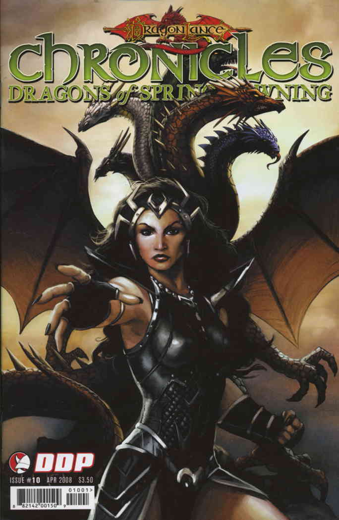 Item: Dragonlance: Chronicles (Vol. 3) #10A | Publisher: Devil's Due | Cover Date: April 2008 | Writer: Margaret Weis, Tracy Hickman, Andrew Dabb | Artist: Julius M. Gopez | Cover Artist: Jeremy Roberts | Notes: Cover A by Jeremy Roberts | With Economy shipping, each additional comic ships for just 50 cents more to customers in the USA. This listing contains a stock photo and information from ComicBase™ and © Human Computing. The stock photo is for reference only. If you would like to see a photo of the actual item, please message us prior to purchasing.Seller Information
