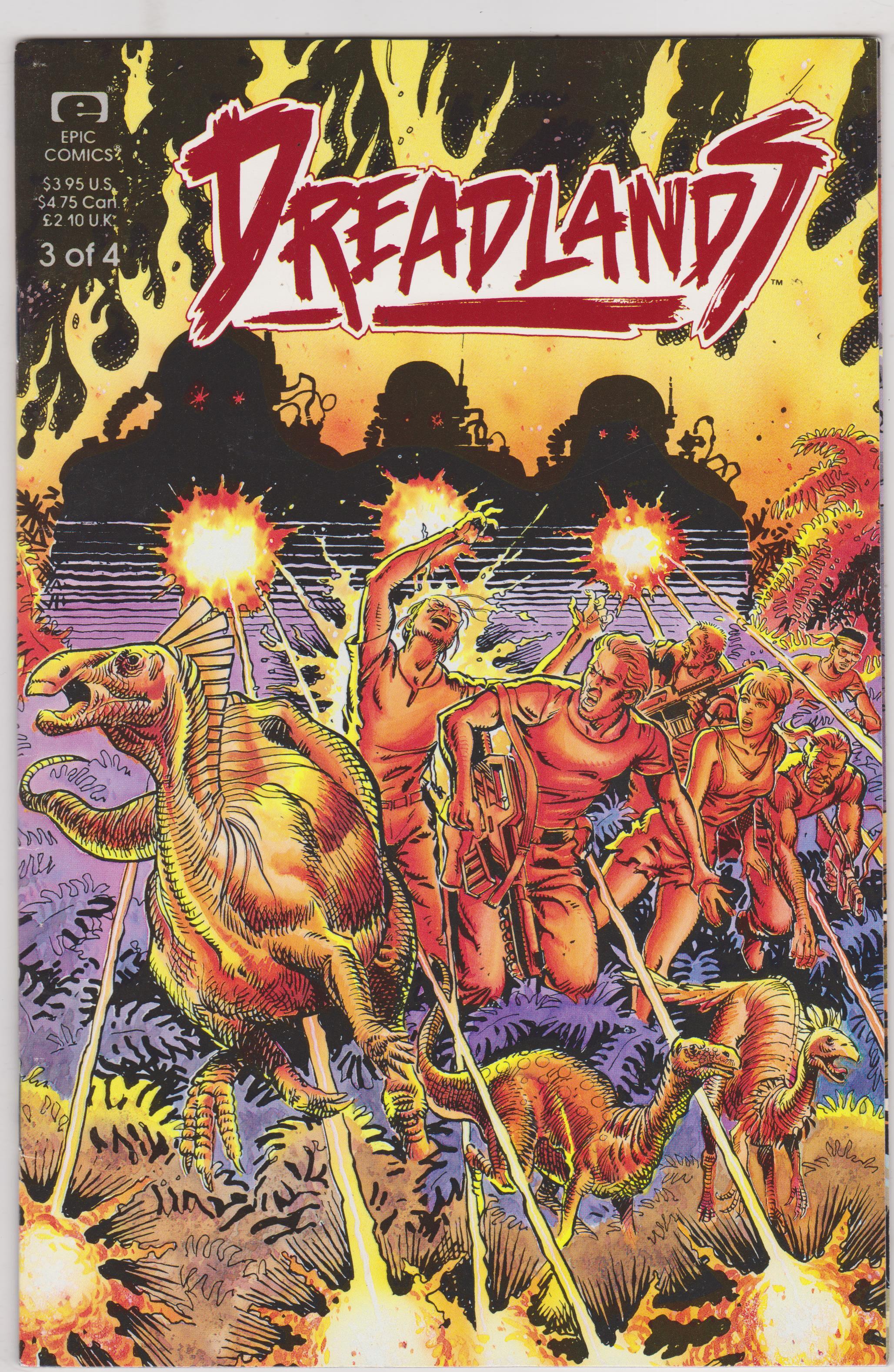 Dreadlands #3 by Epic Comics copyright 1992. I have graded the comic book, using the Ovwerstreet Grading Guide, at FINE/VERY FINE with the following defects: Couple of light stress marks along the spine. The corners are rounded. There is light yellowing of the pages.Seller Information
