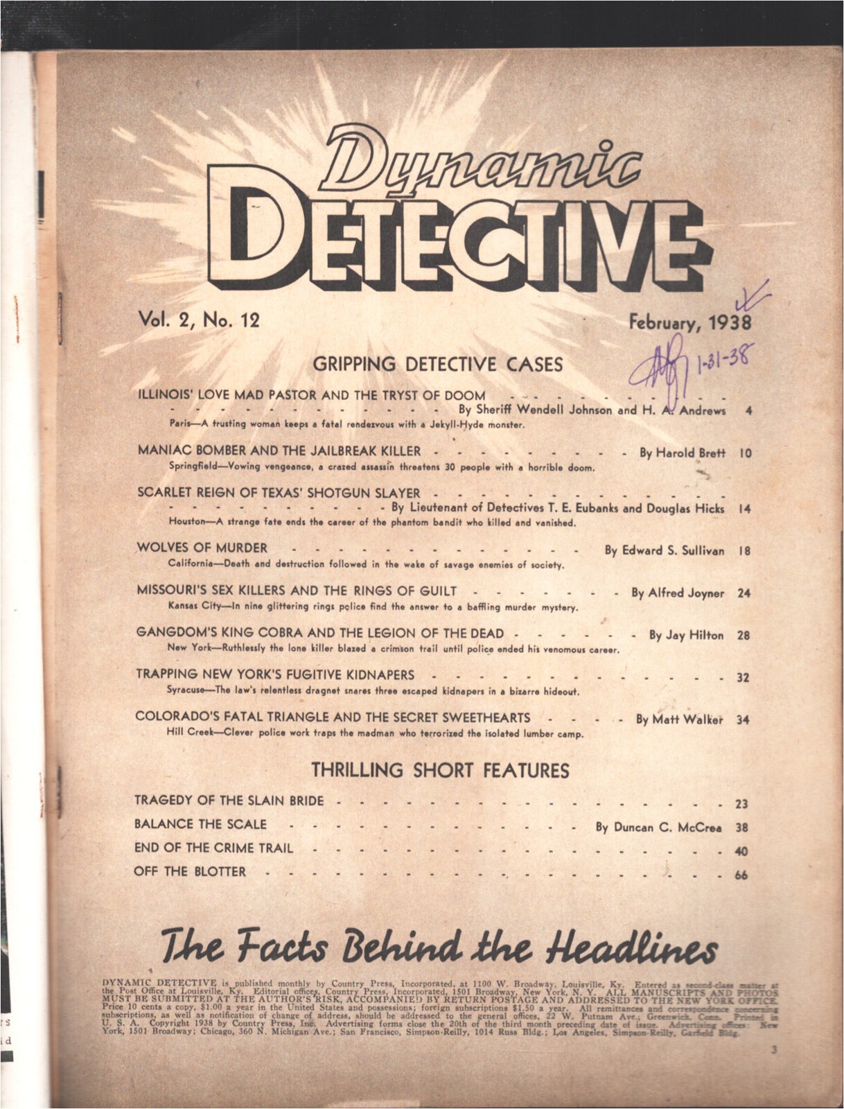 Dynamic Detective 2/1938-Gangland's King Cobra-Crime scene & posed photos -"Gangland's King Cobra and The Legion of The Dead" -Maniac Bomber-California terrorism & more -Crime scene & posed photos Title: Dynamic Det ... Read More