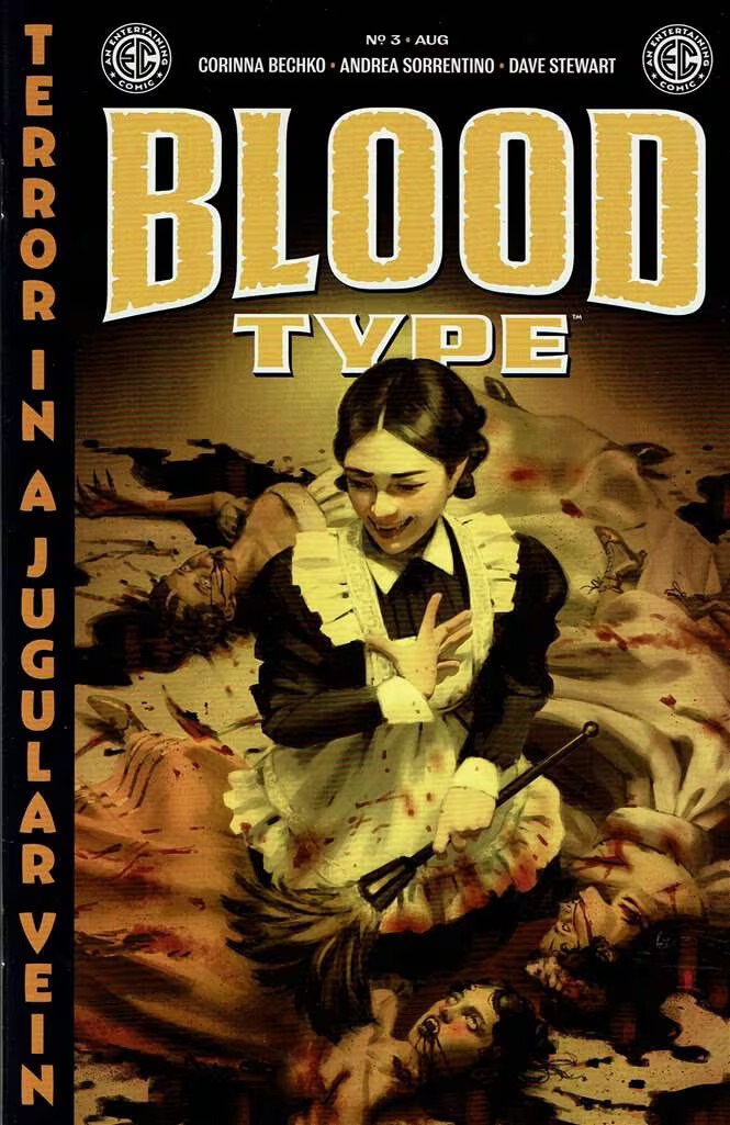 Grade: 9.2 Near Mint-EC BLOOD TYPE (2025 ONI) #3 CVR A MIGUEL MERCADO Item Number: CXWH-R74524 THE HUNTER BECOMES THE HUNTED! It takes a lot to scare a bloodthirsty vampire, but as Ada�s island adventure continues, the true nature of her mysterious foe finally comes into focus, and she�s in way over her head. . . . Or at least, that�s what she�d like them to think. But can she turn the tables on her enemy without falling prey to the angry islanders who are starting to find the corpses left in her wake? Seems there�s nowhere to run . . . but you know what they say about cornering a dangerous predator: Blood will run! EC�s SUMMER OF FEAR digs in deep as Hugo Award nominee Corinna Bechko (Sister Imperator) and superstar artist Andrea Sorrentino (Gideon Falls) bring a crimson-red high tide rushing into the historic, first-ever standalone horror series from the immortal EC Comics!