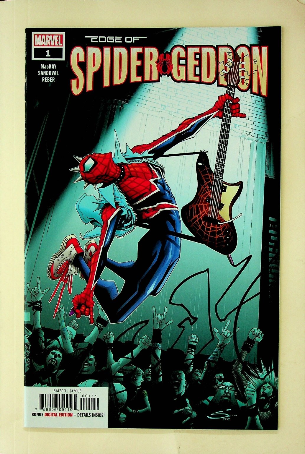 Grade: 9.2 Near Mint-...This is a single issue of EDGE OF SPIDER-GEDDON #1 published by Marvel Comics. This Modern Age comic features a dynamic cover with Spider-Punk, indicative of the Spider-Verse saga. The cover clearly lists MacKay, Sandoval, and Reber as creators. It includes a bonus digital edition, with details inside the comic. This collectible comic book is an essential addition for fans of Spider-Man and the larger Marvel Universe.This listing includes one (1) comic book as shown in the images.Verified Specifications:Publisher: MarvelSeries Title: EDGE OF SPIDER-GEDDONIssue Number: #1Item Type: Single IssueEra: Modern AgeFormat: Direct EditionKey Features: Bonus Digital EditionIncluded Components: 1x Comic BookBarcode/UPC: 759606091195