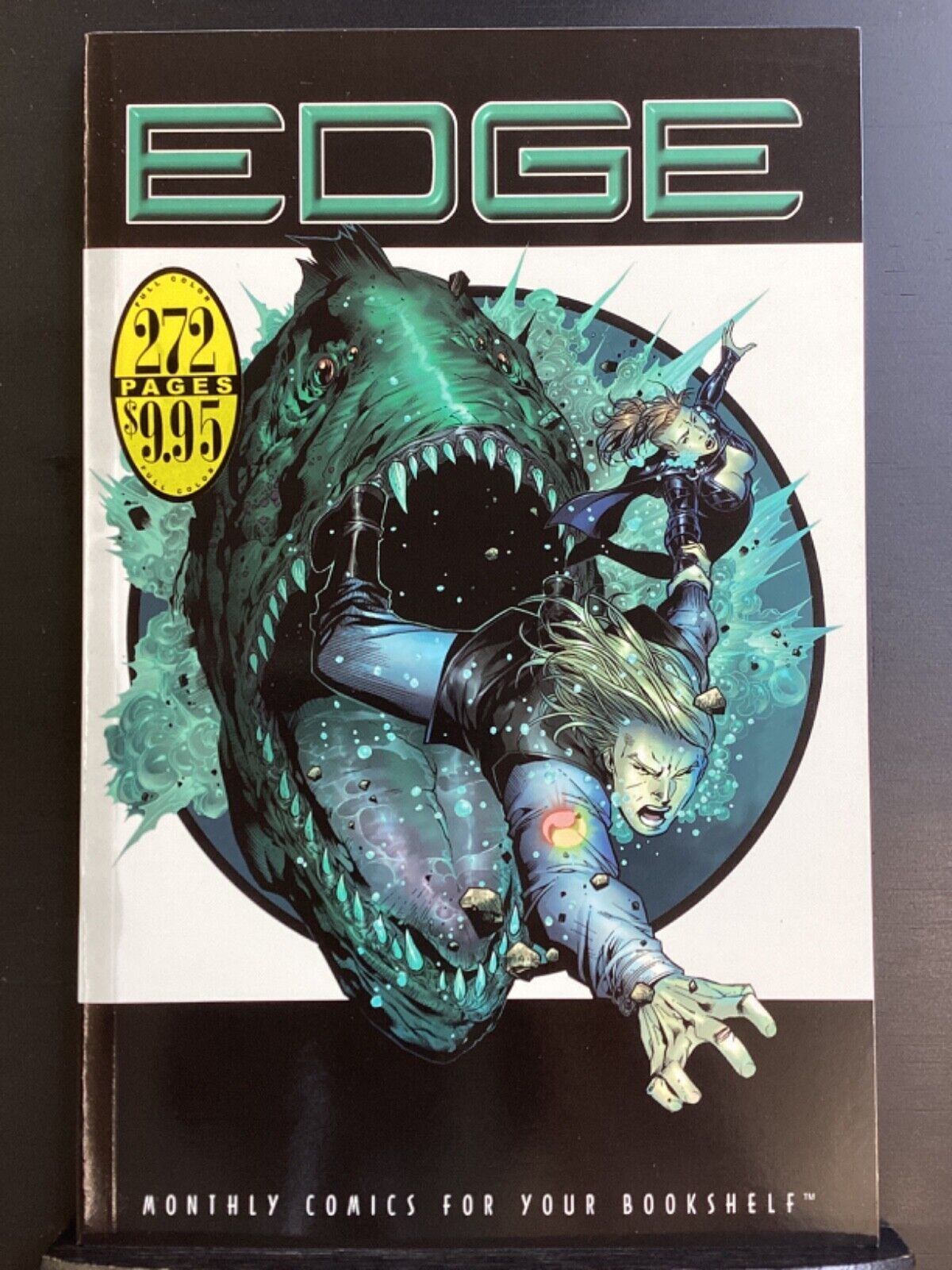 EDGE #3CROSSGEN ENTERTAINMENTQuestion: When is fat pretty? Answer: When it's a fat, 272-page comics compendium! That's right, Edge has gotten even beefier. But don't worry - it's still kept its fine good looks, thanks to fantastic artists like Butch Guice, Mike Perkins, and Laura DePuy, the art team responsible for the fourth installment of Ruse! Edge #3 also carries two chapters each of The First (13 & 14), Mystic (18 & 19), and Sigil (19 & 20). Speaking of Sigil, this volume of Edge presents the first volume of the Saurian mini-series Unnatural Selection. Anchoring this enormously entertaining edition of Edge are chapters 18, 19, and 20 of Scion. Part medieval adventure, part sci-fi epic, Scion is a textbook example of the genre-diversity that is CrossGen's hallmark. The only thing that keeps this book from bursting at the seams is a high-strength cardstock cover built to survive gale-force winds. What's not fat about Edge #3 is the price, which remains a very healthy $9.95!SC, 7x10, 272pg, FC***FIRST PRINTING***GRAPHIC NOVEL/ANTHOLOGYExcalibur Comics, Cards, & Games prides itself on expert packing of your purchase. We combine shipping! Just pay the highest shipping cost and everything else ships free!If you are unsatisfied with your purchase for any reason, just return it to us within 30 days for a full refund of the purchase price. Sorry, we can't refund shipping charges.Stock Photos: The photos displayed within our listings are Stock Photos provided by Hip and the publisher as a visual aid. They are not actual photos of the physical item for sale and should not be relied upon as a basis for edition or condition. We do, however, try to match them the best we can.Seller Information