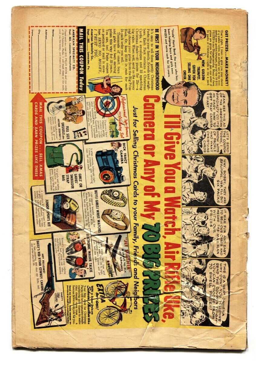 Grade: VG- Eerie #13 1953-Avon-pre-code horror-skulls-weird menace-VG- -There are 24 skulls on this pre-code horror comic cover -Bizarre weird menace stories -Tape inside cover, some water stains on spine. Grade: V ... Read More