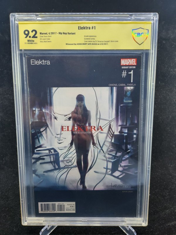 Elektra #1 - Signed & Sketched Keron Grant / Hip Hop Variant - CBCS 9.2 - 2017