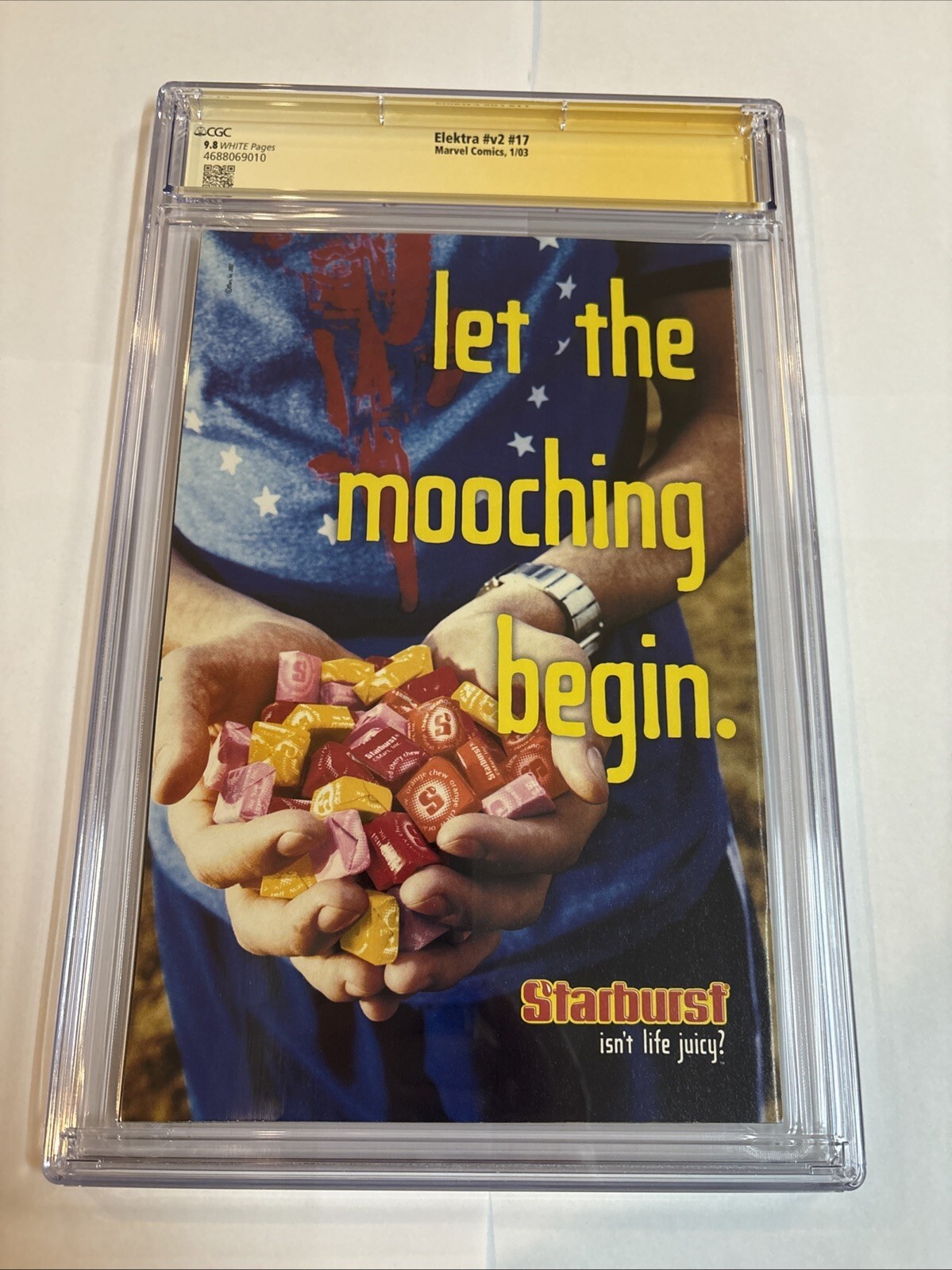 Grade: 9.8 Near Mint/MintDive into the gritty world of Marvel Comics with Elektra (2003) # v2 # 17, a standout single issue that has earned a 9.8 Near Mint/Mint grade from the Certified Guaranty Company (CGC). This highly sought-after comic is further enhanced by the signature of acclaimed artist Greg Horn, adding a layer of authenticity and collectability for enthusiasts and fans.Celebrating the Modern Age of comics, this edition features the iconic superhero Elektra, presented in a format that's cherished by collectors and enthusiasts of US comics. With its CGC certification, you can be assured of its quality and rarity, making it a valuable addition to any Marvel collection.
