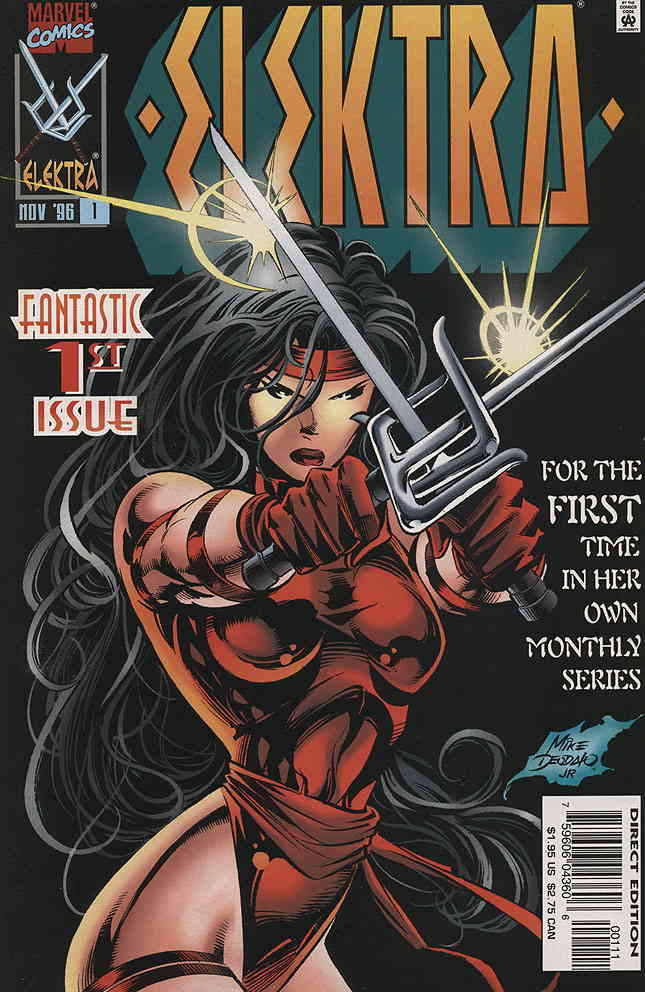 Item: Elektra (2nd Series) #1 | Publisher: Marvel | Cover Date: November 1996 | Writer: Peter Milligan | Artist: Mike Deodato Jr. | Cover Artist: Mike Deodato Jr. | Appearances: Bullseye, Wolverine, Elektra | Storylines: Afraid of the Dark | With Economy shipping, each additional comic ships for just 50 cents more to customers in the USA. This listing contains a stock photo and information from ComicBase™ and © Human Computing. The stock photo is for reference only. If you would like to see a photo of the actual item, please message us prior to purchasing.Seller Information