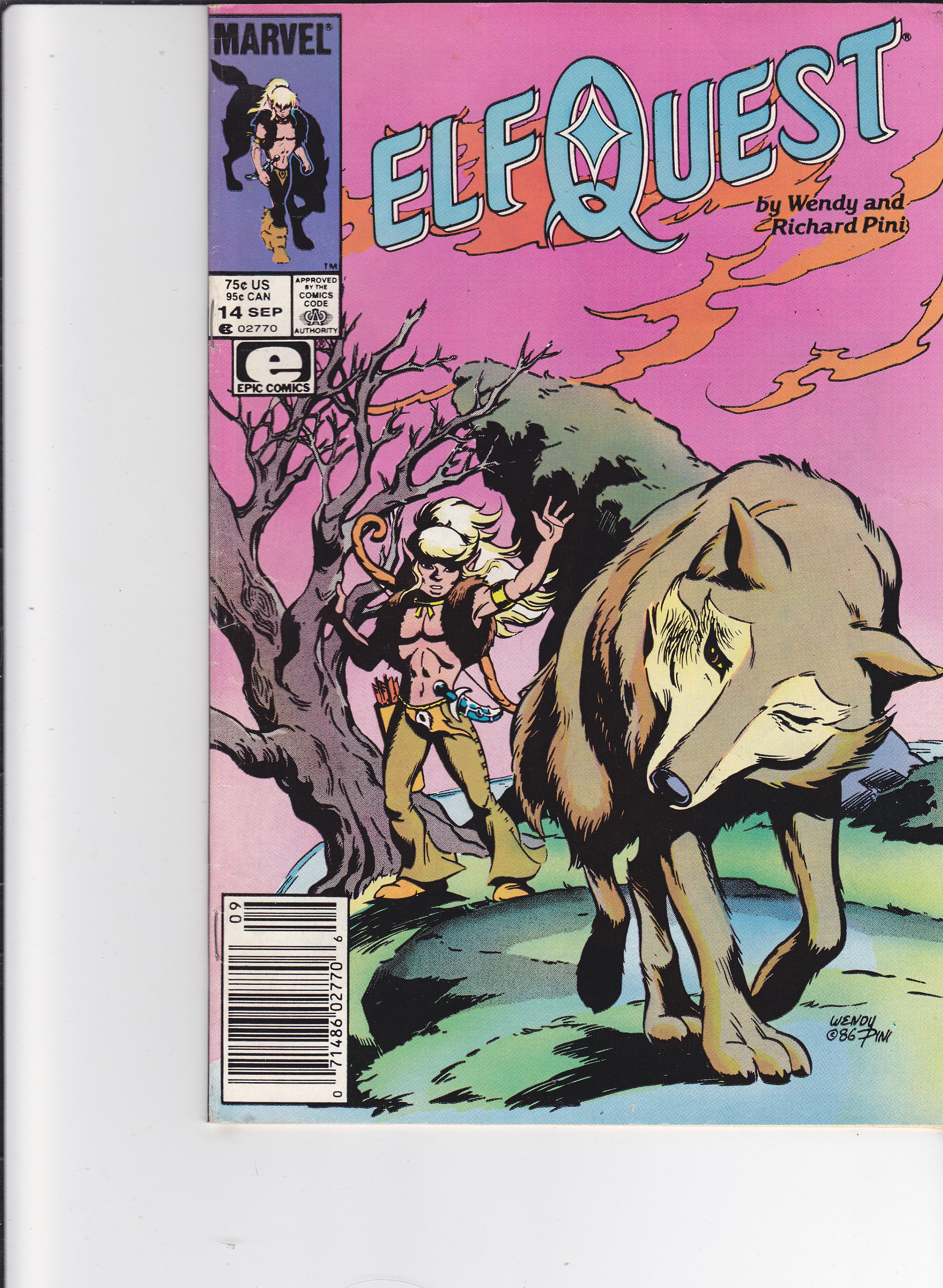 Elfquest #14 by Marvel Comics copyright 1986. I have graded the comic book, using the Overstreet Grading Guide , at FINE with the following defects: Light stress marks along the spine. The corners are rounded. There is some yellowing of the pages.Seller Information
