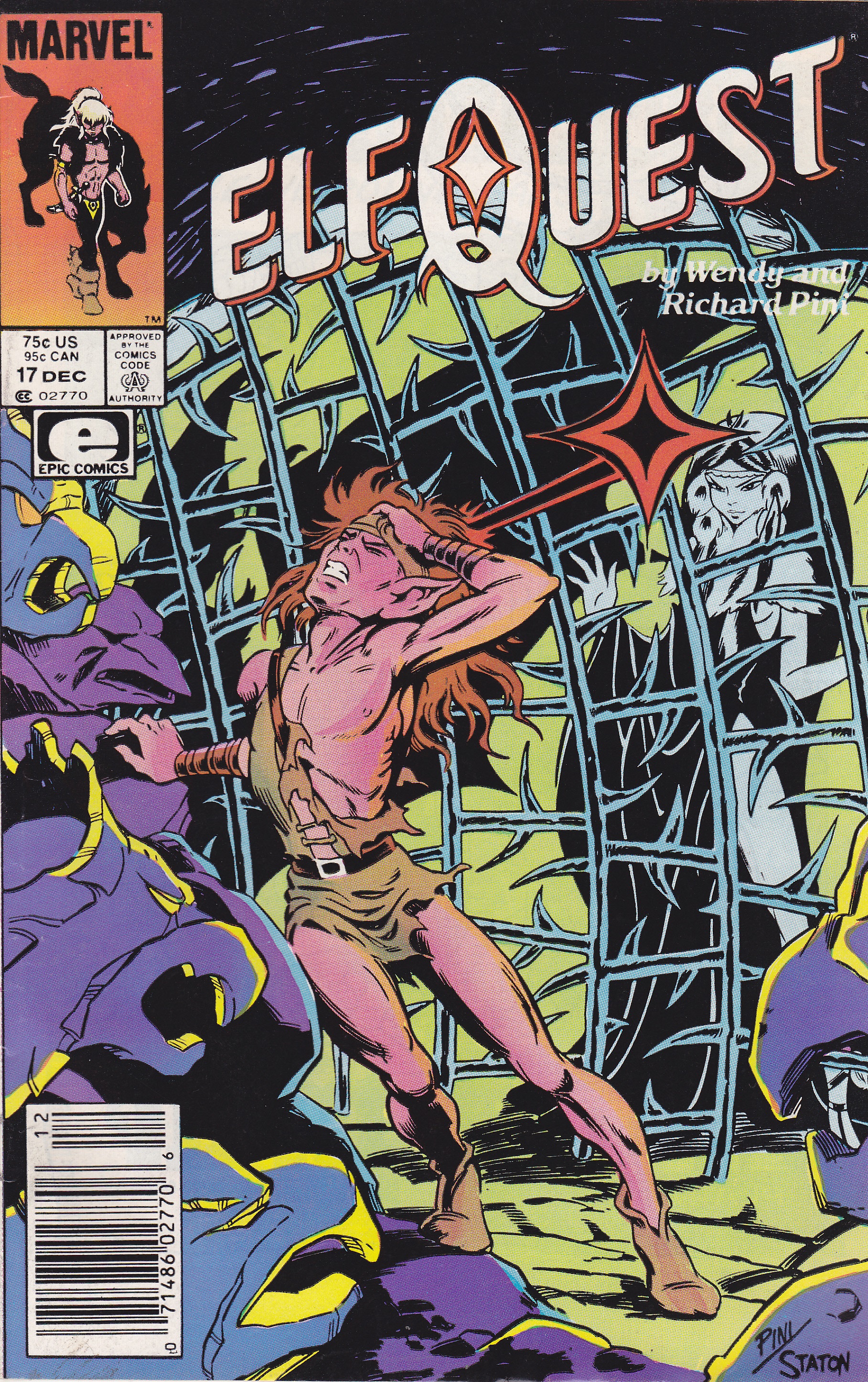 Elfquest #17 by Marvel Comics copyright 1986. I have graded the comic book, using the Overstreet Grading Guide , at FINE with the following defects: Light stress marks along the spine. The corners are rounded. There is some yellowing of the pages.Seller Information