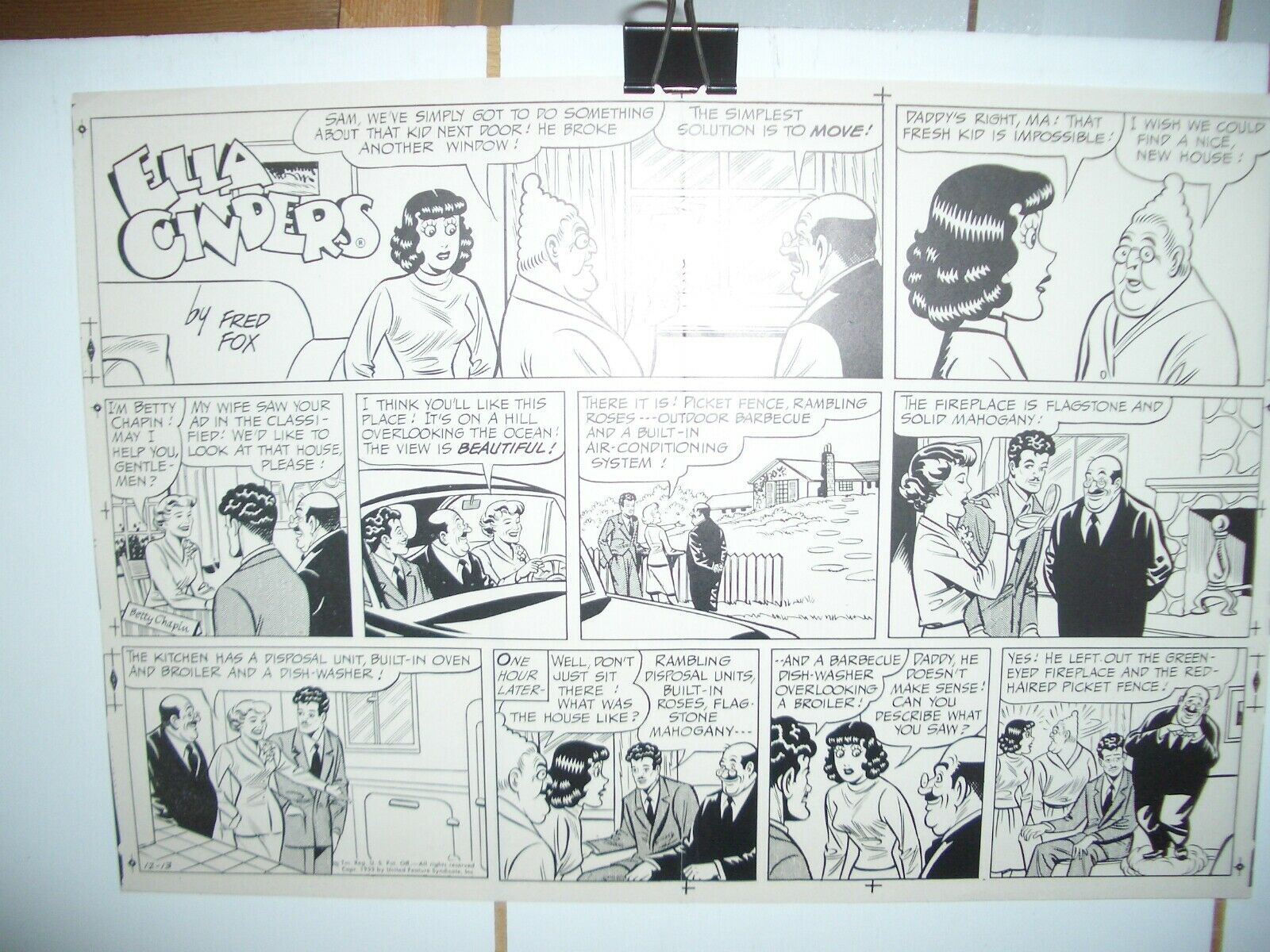 ELLA CINDERS COMICS PRODUCTION ART DEC 13 1953 FRED FOX VG