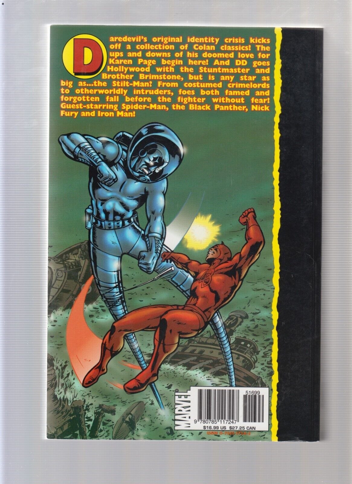 Condition: creases, scuffs, scratches shelf wearEssential Daredevil #3 - 1st Print - Trade Paperback (Mid Grade) 2005Size: 7" x 10"This item was uploaded by __AS__.WE COMBINE SHIPPING!!! Either wait for us to send you an invoice after you commit to buy or, if it makes you pay right away, message us back and we'll refund the excess charge. Buy as many single comic books as you want for one low flat shipping rate in the United States! International will be charged exact according to size and weight. If you have any specific questions or requests, please ask us prior to ordering and we'll get back to you as soon as we can. If there are any problems with your order whatsoever, please message us before leaving feedback and we'll be happy to work with you to fix the situation! We ship worldwide, combine purchases, and charge exact shipping. The price may vary based on size, weight, and location. If you are automatically overcharged for shipping, message us and we'll be happy to revise the invoice or refund you the excess amount. If you have any questions regarding shipping, please message us. International Buyers - Please Note: Import duties, taxes, and charges are not included in the item price or shipping cost. These charges are the buyer's responsibility. Please check with your country's customs office to determine what these additional costs will be prior to bidding or buying. Payment can be made by PayPal and credit cards directly. 120,000+ items in total in my Hip store! Frequently Asked Questions: When are your operation hours?Our in office hours are Monday - Friday, 11 am - 8 pm. We are not open on weekends, so if you send us a request on Friday evening we won't get back to you until Monday afternoon. Please don't take it as us ignoring you! We will work on your request Monday and get back to you as soon as we can. Also, if you order from us on a Friday evening or Saturday morning we won't start processing your order until we open on Monday. That means on Monday it will be pulled and prepped for shipping, then picked up by the postman on Tuesday morning.When will you ship my item? The tracking hasn't moved.We realize you're eager to get your item, so if the tracking hasn't moved in a few days please don't be concerned. We give the postman a lot of packages daily, sometimes as many as 100, so he does not scan each item for us upon pickup as he says it would be too time consuming for him to do so. If you get a tracking number from us, that almost always means your item was picked up by the postman the next business day. The USPS is also imperfect. There are times when the tracking won't even show movement until it's in your area's regional distribution center. This is normal in our experience. Is the item pictured the exact one for sale?Yes! We don't use stock images and go through great lengths to scan or photograph everything we list. The item pictured is exactly what you should receive UNLESS it is a fixed price listing with multiple items available. Can you issue a COA? We can, upon request. Please make sure you leave us a note while checking out and shoot us a message immediately after requesting one, just to be sure. How do you grade?Grading is very subjective, but we are professionals with decades of grading experience between us who try the best we can to accurately describe the condition of the items we list. Anthony is an Overstreet Comic Book Price Guide Advisor Please see the grading chart below for a breakdown of how we grade: NOTE: We don't grade any raw books higher than 9.2, as once you go higher than that grading gets really subjective. If you buy a NM book from us, it may very well be higher than 9.2 but we play it safe and grade conservatively. 9.2 NM Near Mint 9.0 VF/NM Very Fine/Near Mint 8.5 VF+ Very Fine+ 8.0 VF Very Fine 7.5 VF- Very Fine- 7.0 FN/VF Fine/Very Fine 6.5 FN+ Fine+ 6.0 FN Fine 5.5 FN- Fine- 5.0 VG/FN Very Good/Fine 4.5 VG+ Very Good+ 4.0 VG Very Good 3.5 VG- Very Good- 3.0 GD/VG Good/Very Good 2.5 GD+ Good+ 2.0 GD Good 1.8 GD- Good- 1.5 FR/GD Fair/Good 1.0 FR Fair 0.5 PR PoorHow do you ship comics? We ship in rigid cardboard mailers to protect your comic book from the worst the mail system has to offer. Price varies based on the number of books you purchase, but we try to keep costs as low as we can and charge exact shipping. If it looks unusually high to you please send us a message and we'll be happy to double check for you. Do you combine shipping? Yes, of like items. Such as: several comics can fit in one cardboard mailer, as can more than one record. Multiple art pages can easily be combined because they are light and thin. Where combined shipping differs is with size and weight. For instance, two statues require a much bigger box. Same goes for CGCs, as the package gets bigger and heavier as you go. Do you ship well? I've had some bad experiences... You needn't worry; we are professionals who value your business and want your item to arrive safely as much as you do. I have been collecting for over 30 years. I send out items the way I would like to receive them. The tracking says my item is "OUT FOR DELIVERY" in New Jersey. Why is that?If the tracking indicates that the item is "OUT FOR DELIVERY" in NJ don't worry, it's just what the tracking says when it's carried over from the postman to the sorting center. This is normal for our Post Office and will not impact you receiving your item in a timely matter.What is the difference between a RUN and a LOT?Good question. A RUN will be a collection of consecutive issues with no breaks in between them. If it says RUN of #s 1 - 50 you will receive 50 consecutive comics. A LOT will be within a certain range, so a 50pc LOT will not contain consecutive books.I changed my mind after successfully winning the auction or fixed price listing, will you cancel the transaction? Please only bid or hit BUY IT NOW if you are willing to follow through and pay for the item, we will not cancel the transaction. As a selle