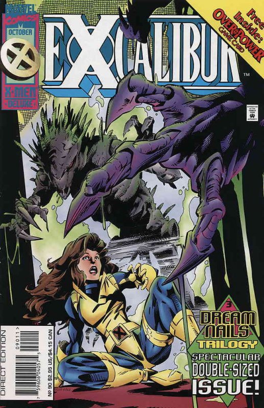 Item: Excalibur #90 (with card) | Publisher: Marvel | Cover Date: October 1995 | Writer: Warren Ellis | Artist: Ken Lashley, David Williams, Carlos Pacheco, Larry Stroman | Cover Artist: Carlos Pacheco | Appearances: Amanda Sefton, Moira MacTaggert, Uncreated, Shadowcat (Kitty Pryde), Pete Wisdom, Spoor, Wolfsbane | Storylines: Dream Nails, Part 3; Blood Eagle | Notes: 1st appearance of Shrine; with bound-in Marvel Overpower card | With Economy shipping, each additional comic ships for just 50 cents more to customers in the USA. This listing contains a stock photo and information from ComicBase™ and © Human Computing. The stock photo is for reference only. If you would like to see a photo of the actual item, please message us prior to purchasing.Seller Information