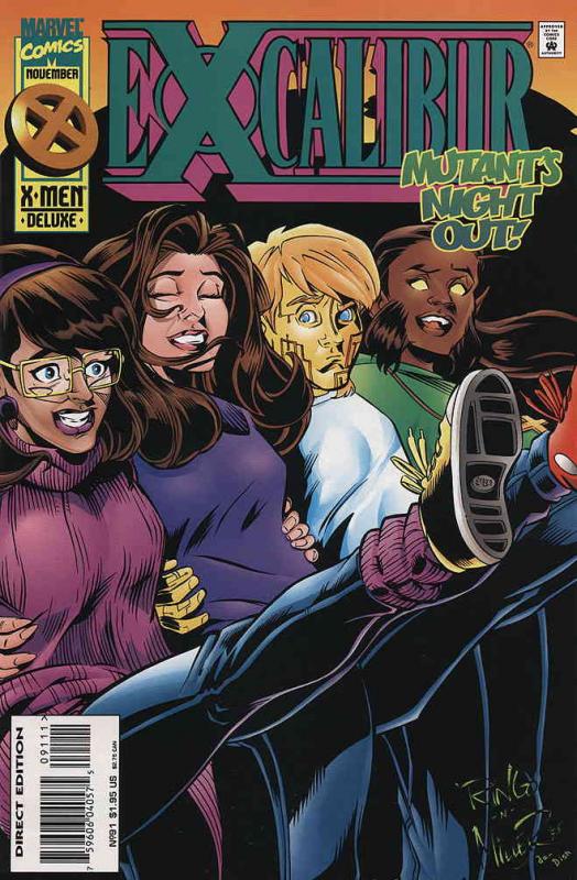 Item: Excalibur #91 | Publisher: Marvel | Cover Date: November 1995 | Writer: Warren Ellis | Artist: David Williams, Mike Wieringo, Jeffrey Moy, Mike S. Miller | Cover Artist: Mike Wieringo | Appearances: Amanda Sefton, Douglock, Meggan Braddock, Nightcrawler (Kurt Wagner), Wolfsbane, Captain Britain (Brian Braddock), Moira MacTaggert, Pete Wisdom | Storylines: Baby I Love You | With Economy shipping, each additional comic ships for just 50 cents more to customers in the USA. This listing contains a stock photo and information from ComicBase™ and © Human Computing. The stock photo is for reference only. If you would like to see a photo of the actual item, please message us prior to purchasing.Seller Information