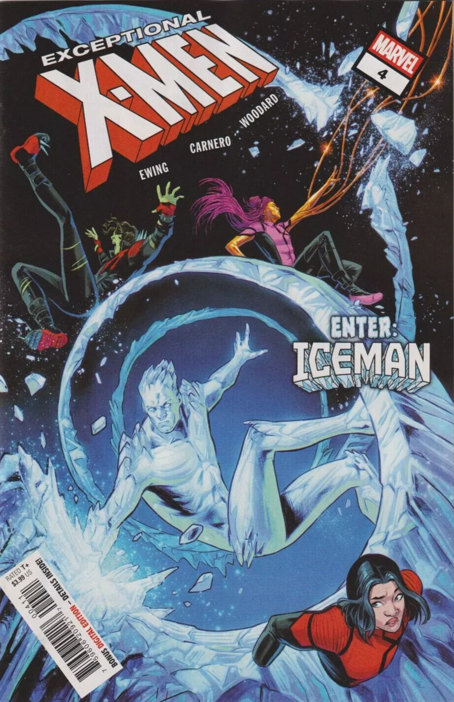 Grade: 9.2 Near Mint-Book Information: (W) Eve L. Ewing (A/CA) Carmen CarneroLO, THE ICEMAN COMETH!But Kitty Pryde suspects that her old comrade Bobby Drake isn't being entirely honest with her. And our all-new hero BRONZE faces her first big solo battle and also has to interact with a person she has a crush on! Which is worse?! *Please note we put a generic grade of 9.2 VF/NM on all of our listings of comics but most are in better condition with very few being worse.**We use the Stock Photo provided by the publisher, due to listing the items before release date. A few times the publisher will make small changes to the image before shipping them, including but not limited to adding trade dress, changing colors of the title, etc. We try and replace the image but do not always see the change. Please be aware.*Terms: We are happy to combine shipping on domestic shipments. If you purchase more than one item, and the following rate does not properly apply, please request a combined shipping invoice before making payment.We DO NOT ship media mail for comics, because those shipments are legally not supposed to contain advertising and are subject to inspection. Media mail shipments also take longer to arrive, so with our First Class or Priority Mail shipment you will get your books in a timely manner and you can trust our integrity in following legal guidelines. We also take special care to package items securely, unlike others who are more concerned with expediency (and skirting shipping rules).If you are and international bidder:We use Hip's international shipping program. Information about this program and to see if your country qualifies check here: