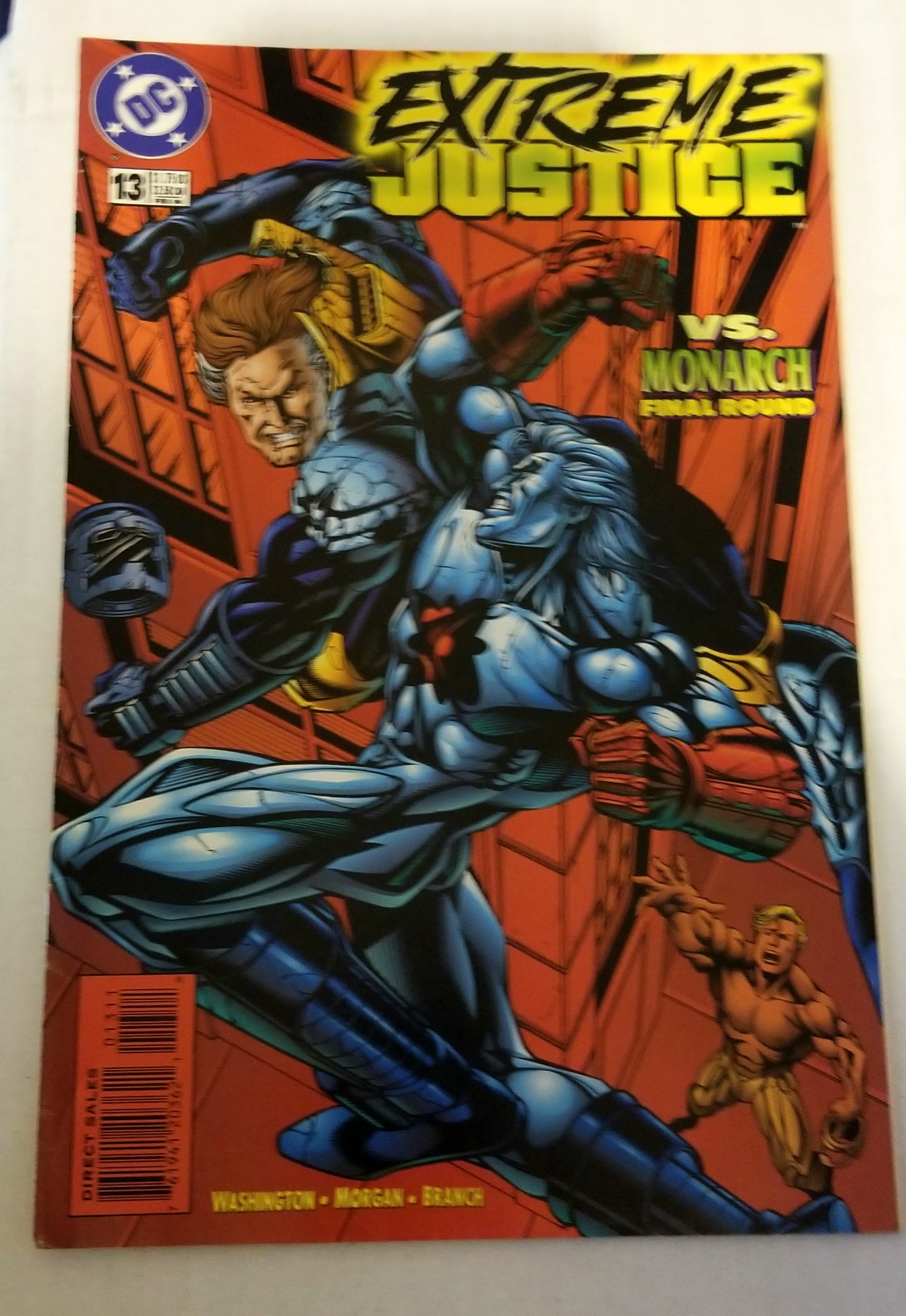 Extreme Justice #13 (1996) by DC Comics. I have graded the comic book, using the Overstreet Grading Guide, at FINE/Vwith the following defects: Light stress mas along the spine. The corners are rounded. Folds in the lower right. There is light yellowing of the pages.Seller Information