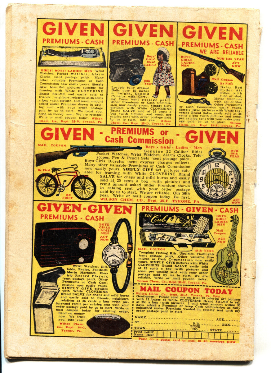 Grade: GFamous Gangsters #3 1951-Paul Stahr cover-Lucky Luciano-golden-age comic -Cool Golden-Age crime comic. -Lucky Luciano cover. -Violent stories. -Heavy pull at top staple, cover loose at bottom staple Complete, no restoration. Grade: G SKU: EA-13-108