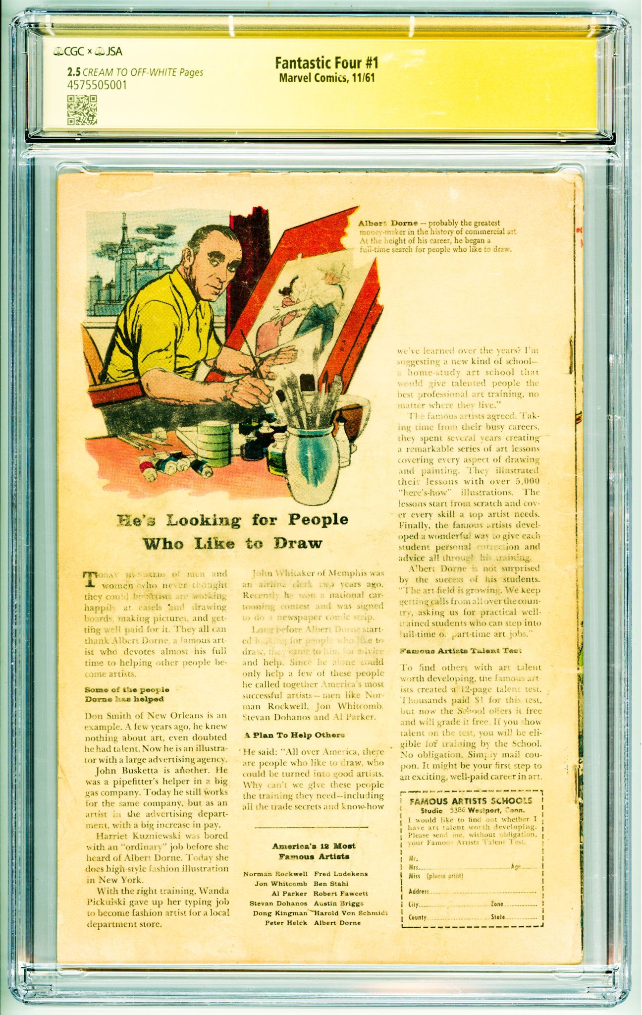 Fantastic Four #1 (1961) CGC 2.5! Signed by Jack Kirby on page 1 Authenticated!!