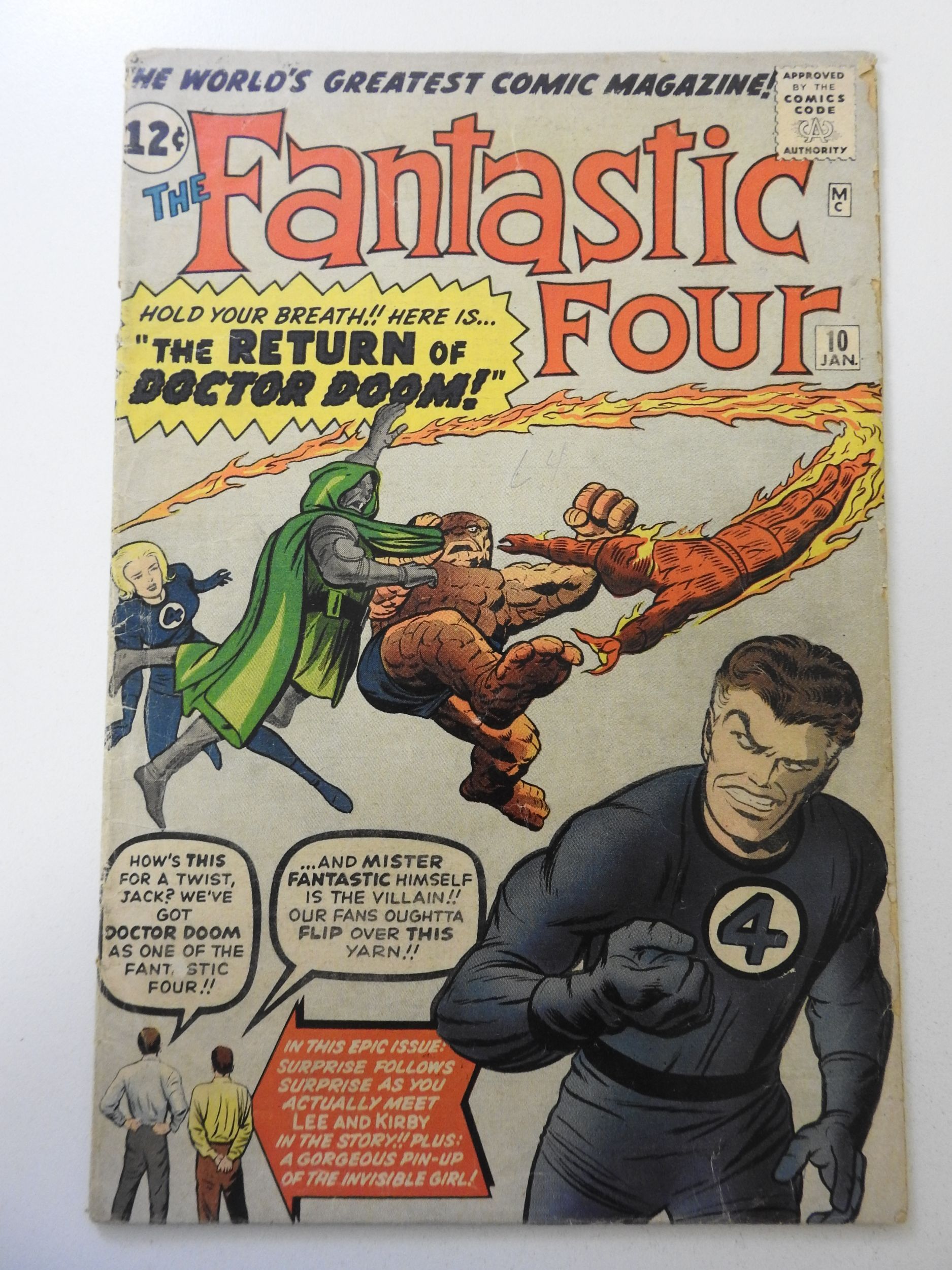 Fantastic Four #10 (1963) VG- Condition tape pull fc