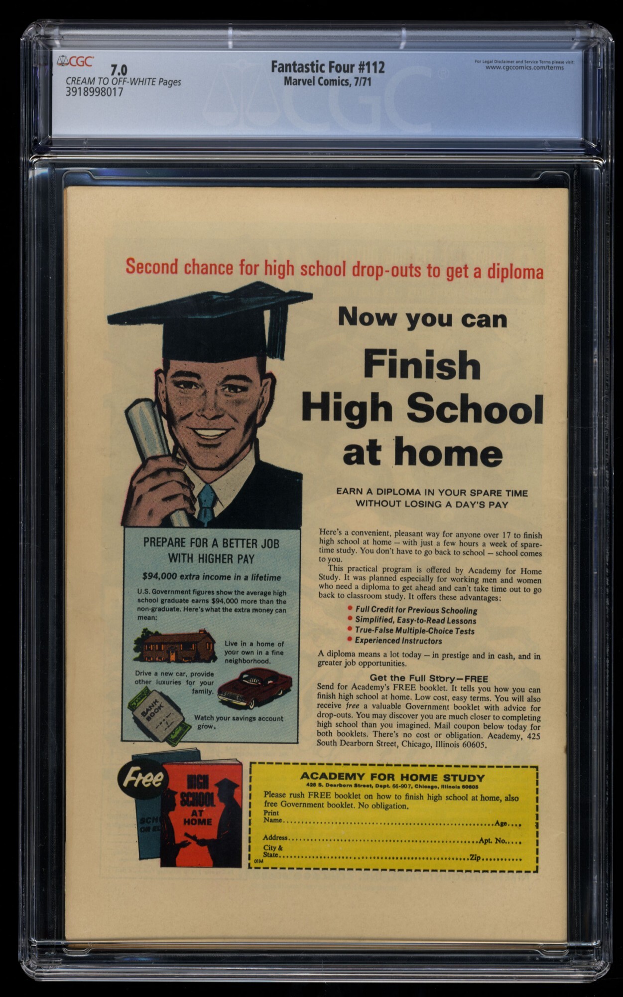 Fantastic Four #112 CGC FN/VF 7.0 Hulk Vs Thing!