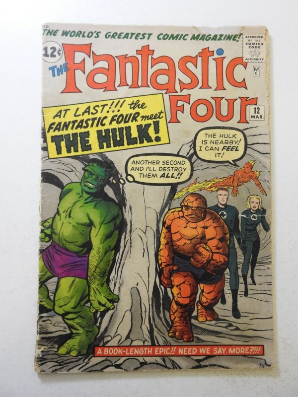 Fantastic Four #12 (1963) GD+ moisture stain, 1 1/2 in cumulative spine split