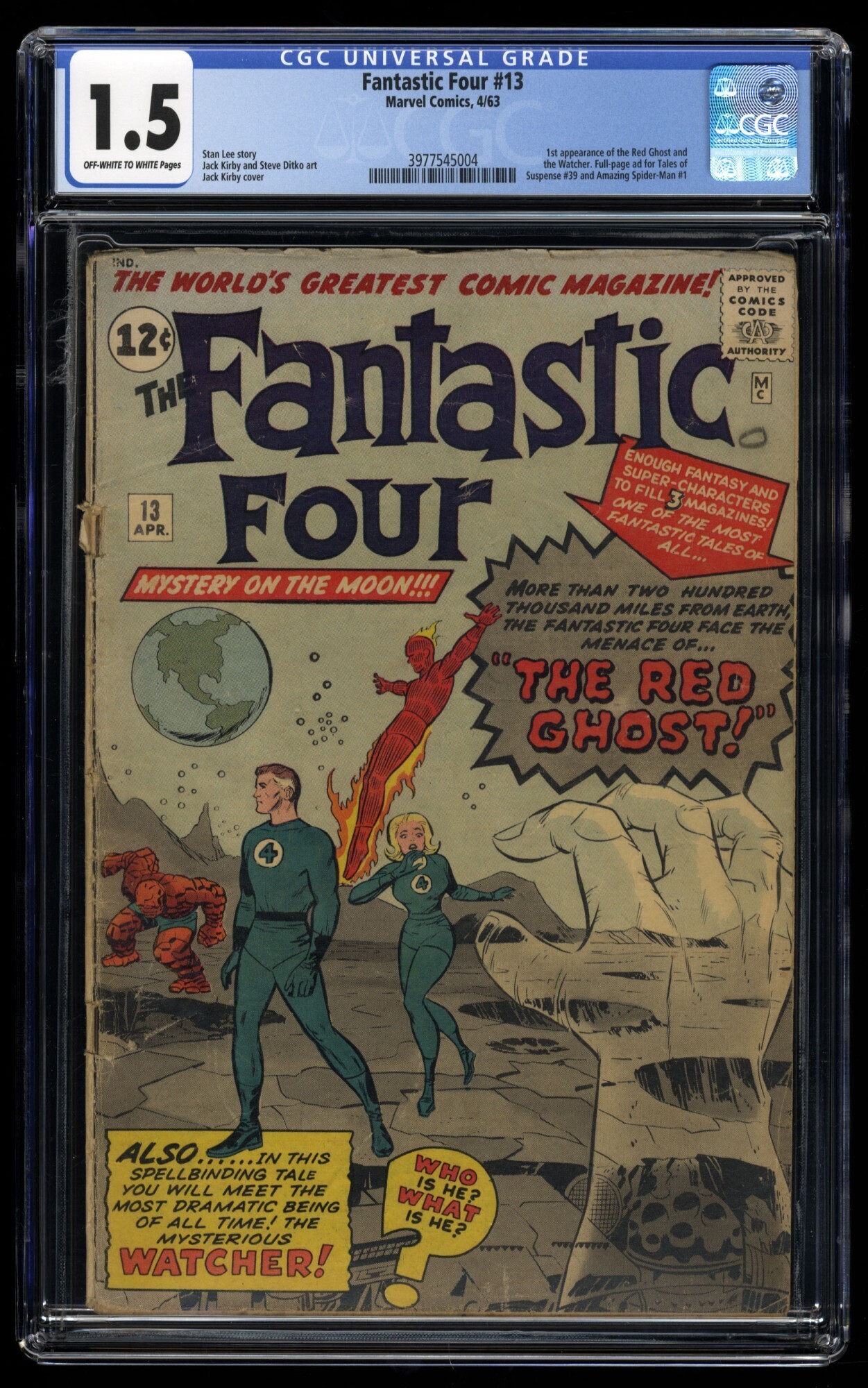 Fantastic Four #13 CGC FA/GD 1.5 Off White to White 1st Watcher and Red Ghost!