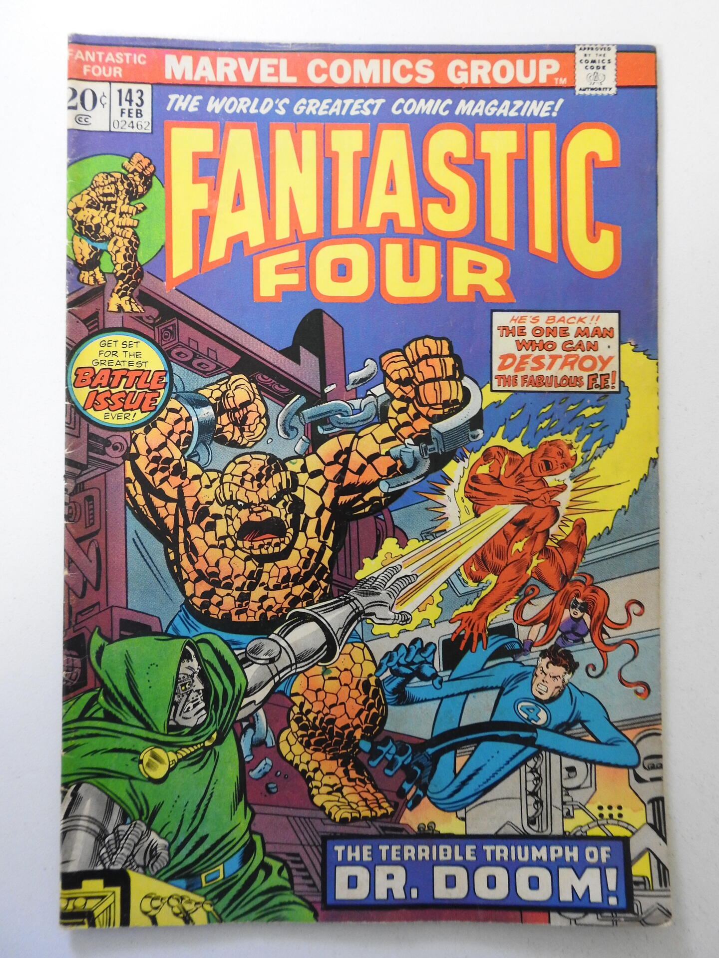 Fantastic Four #143 (1974) VG Condition centerfold detached top staple