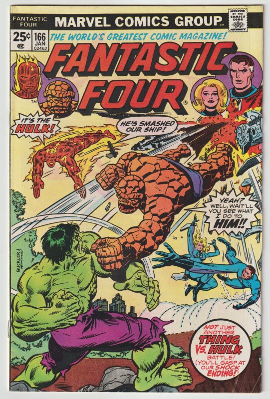 Fantastic Four #166 (Jan 1976, Marvel), FN condition (6.0), vs. the Hulk