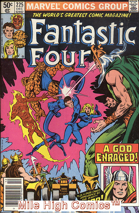 Please note: this is only one of the many thousands of back issue comics, magazines, comics trade paperbacks, and comics hardback collections that we list for sale on Hip. We stock over eight million comics and books in our Denver warehouse, and our gigantic 35,000 square foot Central Denver Mega-Store. Please enjoy shopping! In addition to our low prices, you can also combine an unlimited number of comics (up to 20 comics) and books into a single order for only a $6.95 shipping charge for delivery anywhere in the USA, and $25.00 shipping on most International orders. An important note: the cover photo of the item shown in this listing, is not a scan of the actual item. We sell well over one million back issue comics a year, and thus have a huge library of past scans that we utilize to illustrate the books that we are offering on Hip. Below we have listed a very detailed written description of our grading standards for this particular book. If the issue that we send you fails to meet any part of our grading criteria, we'll arrange for a full refund. The final bit of information that you need to know about us is that our Hip warehouse is closed on the weekends and holidays. We generally ship all our Hip orders Monday-Friday, and with the exception of orders arriving on Friday, we generally can ship Hip orders within 48 hours. Happy Collecting! Chuck Rozanski, President - Mile High Comics, Inc. FANTASTIC FOUR (Series Began 1961) (MARVEL) Issue #225 NEWSSTAND comics in Very Good condition. Published by Marvel.Very Good - The average used comic book. A comic in this grade shows wear, can have a reading or center crease and/or a rolled spine, but has not accumulated enough total defects to reduce eye appeal to the point that it is not a desirable copy. Discoloration, fading and even minor soiling is allowed. As much as a 1/4 inch triangle can be missing out of the corner or edge. A missing square piece, 1/4 inch by 1/4 inch, is also acceptable. Store stamps, name stamps, arrival dates, initials, etc. have no effect on this grade. Cover and interior pages can have one or two minor tears and folds and the centerfold may be loose or detached. One staple can be loose, but the cover is not completely detached. Common bindery and printing defects do not affect grade. Pages and inside covers may be brown but not brittle. Tape should never be used for comic book repair, however may Very Good condition comics have minor tape repair.We list over 200,000 items in our Hip Store. Shipping costs apply only to the first item. All additional items in the same order ship for free!The image in this listing is from a random copy of this product that we have had in stock recently. It probably will not be the item we send you, nor even representative of the grade of this item, but is meant to help you determine if this is the item you want.Seller Information
