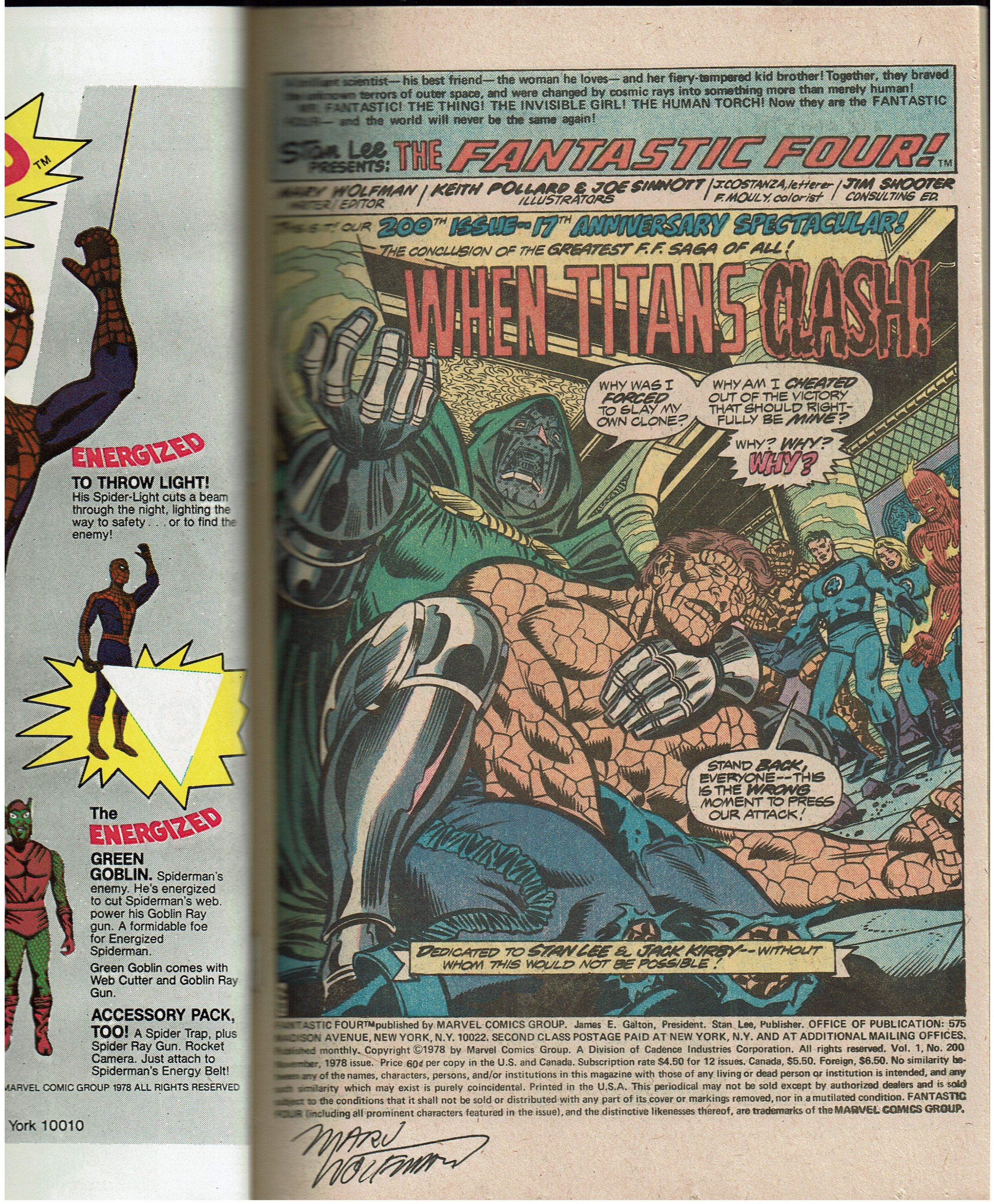 Fantastic Four #200, 9.0 or Better, SIgned by Marv Wolfman