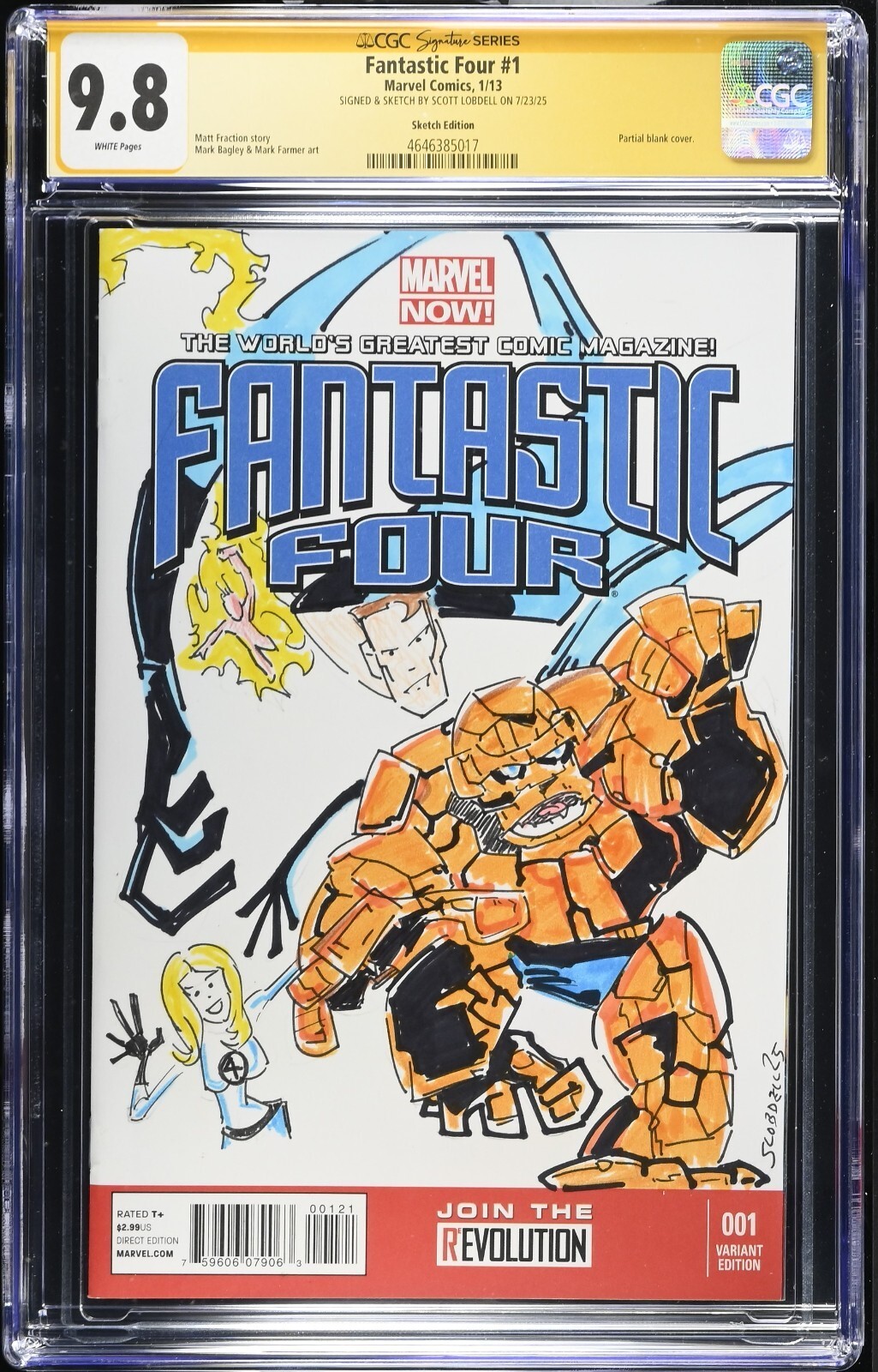 Fantastic Four (2013) # 1 (CGC 9.8 SS) Signed & Sketch Scott Lobdell * Marvel