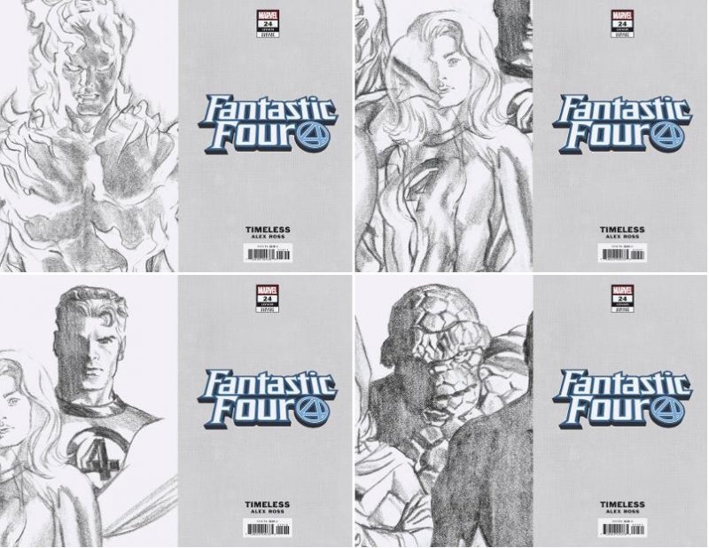 Fantastic Four # 24 Alex Ross 1:100 Timeless Sketch Variant set NM or Better
