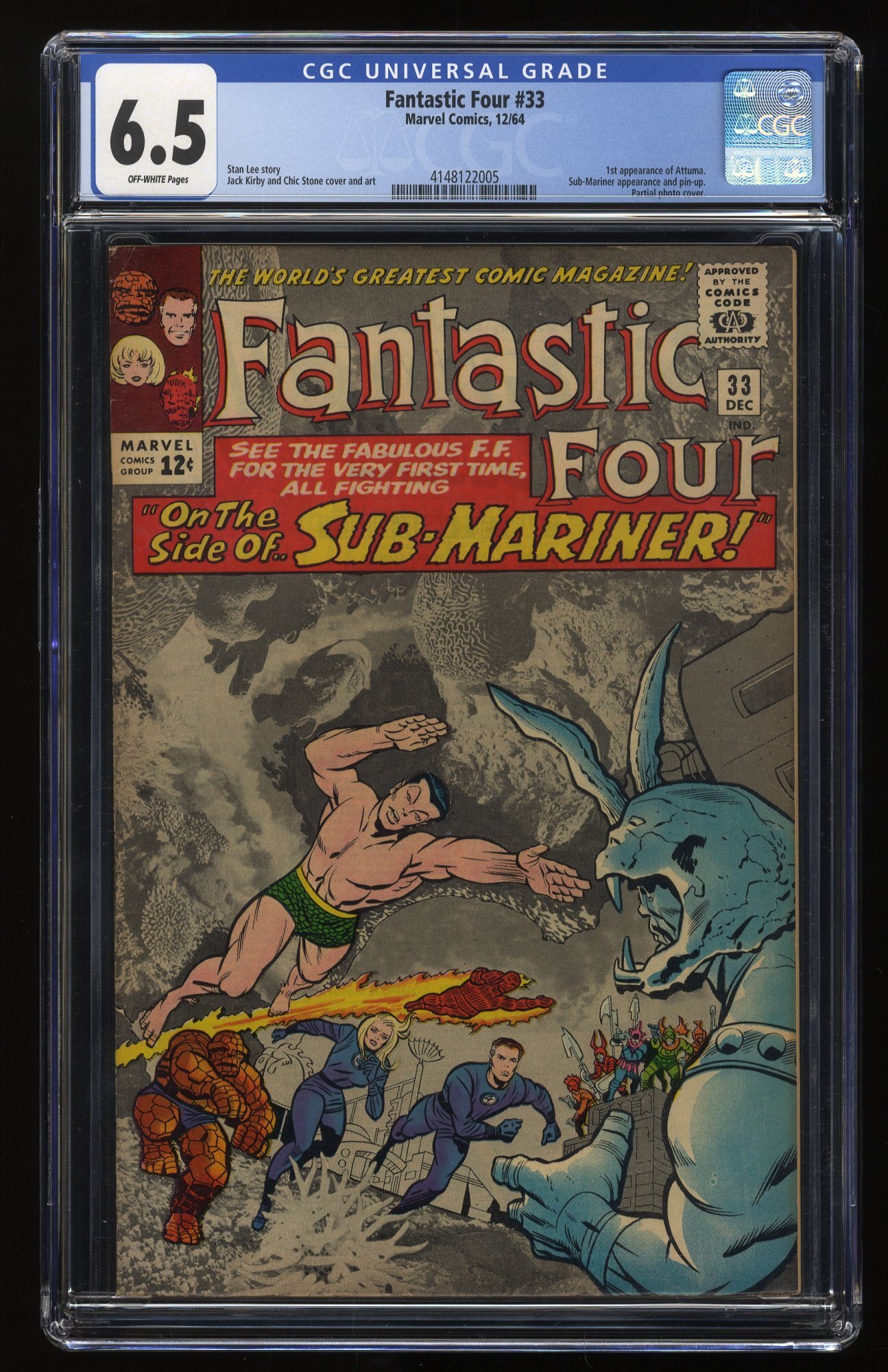 Fantastic Four #33 CGC FN+ 6.5 Off White 1st Appearance Attuma Jack Kirby!