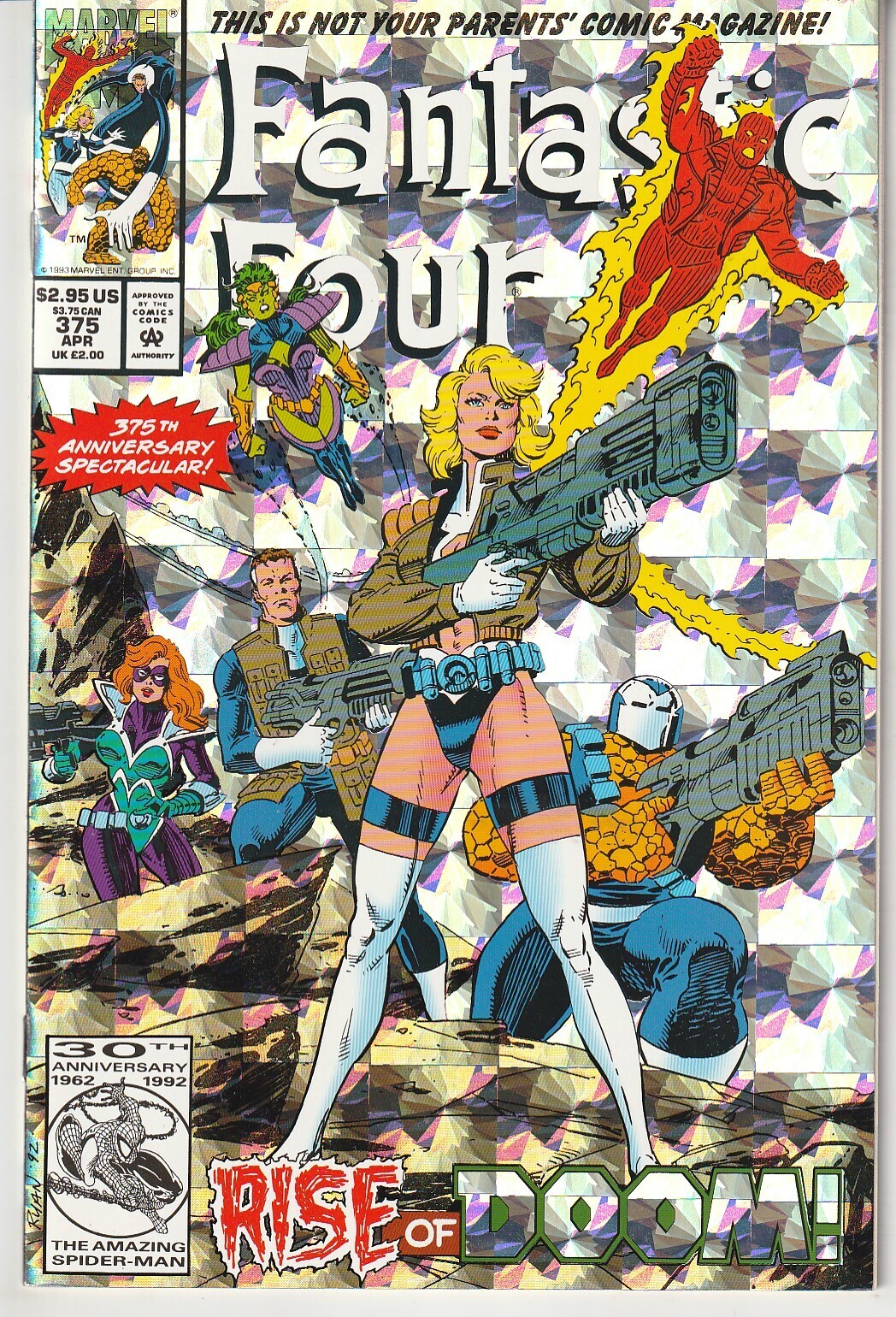 Fantastic Four #375 (1993) Near Mint (9.2)- Virtually no defects. Spine, Cover, and Pages in Pristine Condition (Creamy white pages, no fading, no discernible chicks or cracks, no tears Foil Prism Cover. Doctor Doom ... Read More