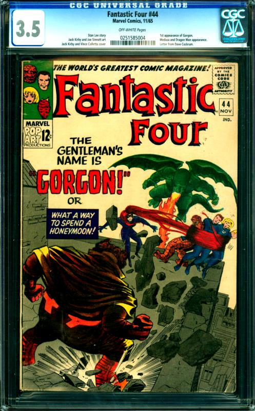 Fantastic Four #44 CGC Graded 3.5 1st Gorgon. Medusa & Dragon Man App.