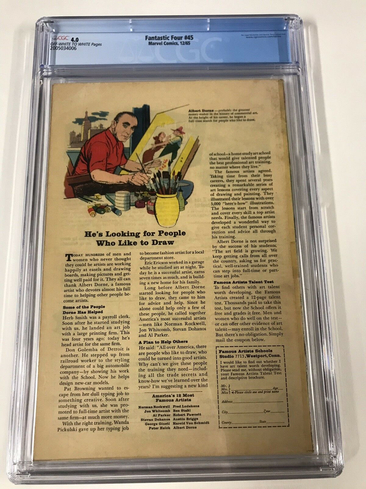 Fantastic Four 45 Cgc 4.0 Ow/w Pages Marvel Silver Age 1st Inhumans