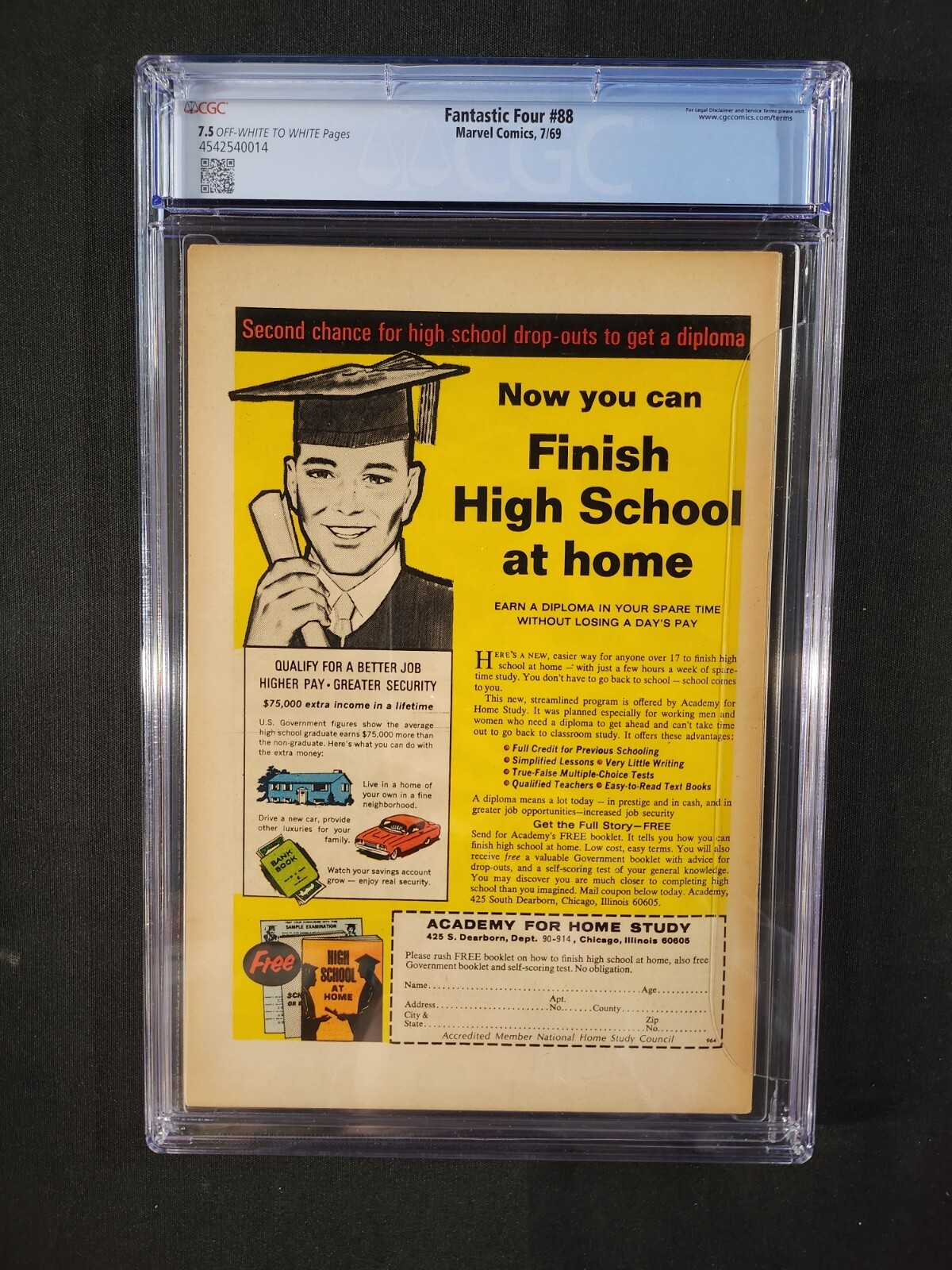 Grade: 7.5 Very Fine-Fantastic Four #88 - Mole Man App / Stan Lee, Jack Kirby (CGC 7.5) 1969Size: 8" x 13"This item was uploaded by __LM__.If you have any specific questions or requests, please ask us prior to ordering and we'll get back to you as soon as we can. If there are any problems with your order whatsoever, please message us before leaving feedback and we'll be happy to work with you to fix the situation!We ship worldwide, combine purchases, and charge exact shipping. The price may vary based on size, weight, and location. If you are automatically overcharged for shipping, message us and we'll be happy to revise the invoice or refund you the excess amount. If you have any questions regarding shipping, please message us.International Buyers - Please Note: Import duties, taxes, and charges are not included in the item price or shipping cost. These charges are the buyer's responsibility. Please check with your country's customs office to determine what these additional costs will be prior to bidding or buying. Payment can be made by PayPal and credit cards directly.120,000+ items in total in my Hip store! Frequently Asked Questions: When are your operation hours? Our in office hours are Monday - Friday, 11 am - 8 pm. We are not open on weekends, so if you send us a request on Friday evening we won't get back to you until Monday afternoon. Please don't take it as us ignoring you! We will work on your request Monday and get back to you as soon as we can. Also, if you order from us on a Friday evening or Saturday morning we won't start processing your order until we open on Monday. That means on Monday it will be pulled and prepped for shipping, then picked up by the postman on Tuesday morning. When will you ship my item? The tracking hasn't moved. We realize you're eager to get your item, so if the tracking hasn't moved in a few days please don't be concerned. We give the postman a lot of packages daily, sometimes as many as 100, so he does not scan each item for us upon pickup as he says it would be too time consuming for him to do so. If you get a tracking number from us, that almost always means your item was picked up by the postman the next business day. The USPS is also imperfect. There are times when the tracking won't even show movement until it's in your area's regional distribution center. This is normal in our experience. Is the item pictured the exact one for sale?Yes! We don't use stock images and go through great lengths to photograph everything we list. The item pictured is exactly what you should receive UNLESS it is a fixed price listing with multiple items available.Have these CGCs had any previous owners? No. I have personally sent in almost all of these to CGC and had them returned to me, offering them fresh to the market for the 1st time. What is your base shipping for CGC comics? Domestic for CGCs are $10 for the first and $5 for each additional one you add. How do you ship comics?We ship in rigid cardboard mailers to protect your comic book from the worst the mail system has to offer. Price varies based on the number of books you purchase, but we try to keep costs as low as we can and charge exact shipping. If it looks unusually high to you please send us a message and we'll be happy to double check for you. Do you combine shipping? Yes, of like items. Such as: several comics can fit in one cardboard mailer, as can more than one record. Multiple art pages can easily be combined because they are light and thin. Where combined shipping differs is with size and weight. For instance, two statues require a much bigger box. Same goes for CGCs, as the package gets bigger and heavier as you go. Do you ship well? I've had some bad experiences... You needn't worry; we are professionals who value your business and want your item to arrive safely as much as you do. I have been collecting for over 30 years. I send out items the way I would like to receive them. The tracking says my item is "OUT FOR DELIVERY" in New Jersey. Why is that?If the tracking indicates that the item is "OUT FOR DELIVERY" in NJ don't worry, it's just what the tracking says when it's carried over from the postman to the sorting center. This is normal for our Post Office and will not impact you receiving your item in a timely matter.I changed my mind after successfully winning the auction or fixed price listing, will you cancel the transaction? Please only bid or hit BUY IT NOW if you are willing to follow through and pay for the item, we will not cancel the transaction. As a seller, Hip penalizes us every time we cancel an order, so it is detrimental to our business to do so. Therefore if you will not pay, then you'll have to let Hip cycle this to an "unpaid item" and accept whatever action Hip deems necessary. 120,000+ items in total in my Hip store! AS SEEN ON TV I have been buying and selling artwork and comics for about 20 years. The artwork pictured are all one of kind originals unless otherwise described. If you are new to buying art feel free to ask any questions that you may have. 120,000+ items in total in my Hip store! Small, Regular, and Large Portfolios available; see my Hip store!