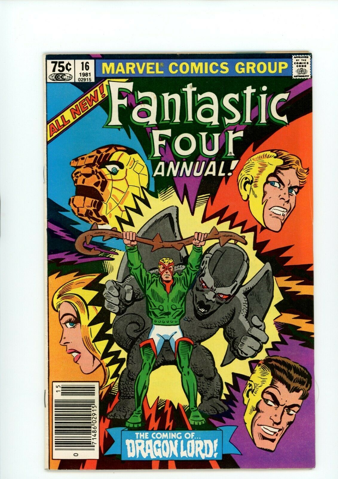 FANTASTIC FOUR ANNUAL #16 (7.5) DITKO WORK!! 1981Size: 7" x 10"This item was uploaded by RV.WE COMBINE SHIPPING!!! Either wait for us to send you an invoice after you commit to buy or, if it makes you pay right away, message us back and we'll refund the excess charge. Buy as many single comic books as you want for one low flat shipping rate in the United States! International will be charged exact according to size and weight. If you have any specific questions or requests, please ask us prior to ordering and we'll get back to you as soon as we can. If there are any problems with your order whatsoever, please message us before leaving feedback and we'll be happy to work with you to fix the situation! We ship worldwide, combine purchases, and charge exact shipping. The price may vary based on size, weight, and location. If you are automatically overcharged for shipping, message us and we'll be happy to revise the invoice or refund you the excess amount. If you have any questions regarding shipping, please message us. International Buyers - Please Note: Import duties, taxes, and charges are not included in the item price or shipping cost. These charges are the buyer's responsibility. Please check with your country's customs office to determine what these additional costs will be prior to bidding or buying. Payment can be made by PayPal and credit cards directly. 120,000+ items in total in my Hip store! Frequently Asked Questions: When are your operation hours?Our in office hours are Monday - Friday, 11 am - 8 pm. We are not open on weekends, so if you send us a request on Friday evening we won't get back to you until Monday afternoon. Please don't take it as us ignoring you! We will work on your request Monday and get back to you as soon as we can. Also, if you order from us on a Friday evening or Saturday morning we won't start processing your order until we open on Monday. That means on Monday it will be pulled and prepped for shipping, then picked up by the postman on Tuesday morning.When will you ship my item? The tracking hasn't moved.We realize you're eager to get your item, so if the tracking hasn't moved in a few days please don't be concerned. We give the postman a lot of packages daily, sometimes as many as 100, so he does not scan each item for us upon pickup as he says it would be too time consuming for him to do so. If you get a tracking number from us, that almost always means your item was picked up by the postman the next business day. The USPS is also imperfect. There are times when the tracking won't even show movement until it's in your area's regional distribution center. This is normal in our experience. Is the item pictured the exact one for sale?Yes! We don't use stock images and go through great lengths to scan or photograph everything we list. The item pictured is exactly what you should receive UNLESS it is a fixed price listing with multiple items available. Can you issue a COA? We can, upon request. Please make sure you leave us a note while checking out and shoot us a message immediately after requesting one, just to be sure. How do you grade?Grading is very subjective, but we are professionals with decades of grading experience between us who try the best we can to accurately describe the condition of the items we list. Anthony is an Overstreet Comic Book Price Guide Advisor Please see the grading chart below for a breakdown of how we grade: NOTE: We don't grade any raw books higher than 9.2, as once you go higher than that grading gets really subjective. If you buy a NM book from us, it may very well be higher than 9.2 but we play it safe and grade conservatively. 9.2 NM Near Mint 9.0 VF/NM Very Fine/Near Mint 8.5 VF+ Very Fine+ 8.0 VF Very Fine 7.5 VF- Very Fine- 7.0 FN/VF Fine/Very Fine 6.5 FN+ Fine+ 6.0 FN Fine 5.5 FN- Fine- 5.0 VG/FN Very Good/Fine 4.5 VG+ Very Good+ 4.0 VG Very Good 3.5 VG- Very Good- 3.0 GD/VG Good/Very Good 2.5 GD+ Good+ 2.0 GD Good 1.8 GD- Good- 1.5 FR/GD Fair/Good 1.0 FR Fair 0.5 PR PoorHow do you ship comics? We ship in rigid cardboard mailers to protect your comic book from the worst the mail system has to offer. Price varies based on the number of books you purchase, but we try to keep costs as low as we can and charge exact shipping. If it looks unusually high to you please send us a message and we'll be happy to double check for you. Do you combine shipping? Yes, of like items. Such as: several comics can fit in one cardboard mailer, as can more than one record. Multiple art pages can easily be combined because they are light and thin. Where combined shipping differs is with size and weight. For instance, two statues require a much bigger box. Same goes for CGCs, as the package gets bigger and heavier as you go. Do you ship well? I've had some bad experiences... You needn't worry; we are professionals who value your business and want your item to arrive safely as much as you do. I have been collecting for over 30 years. I send out items the way I would like to receive them. The tracking says my item is "OUT FOR DELIVERY" in New Jersey. Why is that?If the tracking indicates that the item is "OUT FOR DELIVERY" in NJ don't worry, it's just what the tracking says when it's carried over from the postman to the sorting center. This is normal for our Post Office and will not impact you receiving your item in a timely matter.What is the difference between a RUN and a LOT?Good question. A RUN will be a collection of consecutive issues with no breaks in between them. If it says RUN of #s 1 - 50 you will receive 50 consecutive comics. A LOT will be within a certain range, so a 50pc LOT will not contain consecutive books.I changed my mind after successfully winning the auction or fixed price listing, will you cancel the transaction? Please only bid or hit BUY IT NOW if you are willing to follow through and pay for the item, we will not cancel the transaction. As a seller, Hip penalizes us every time we cancel an order, so it is detrimental 