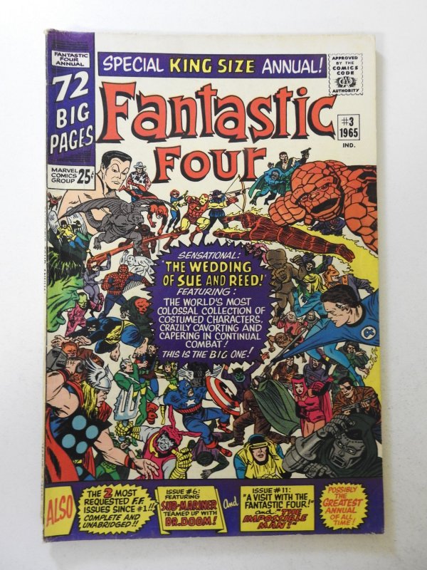 Fantastic Four Annual #3 (1965) VG Cond 1/2 in spine split, bug chew on spine