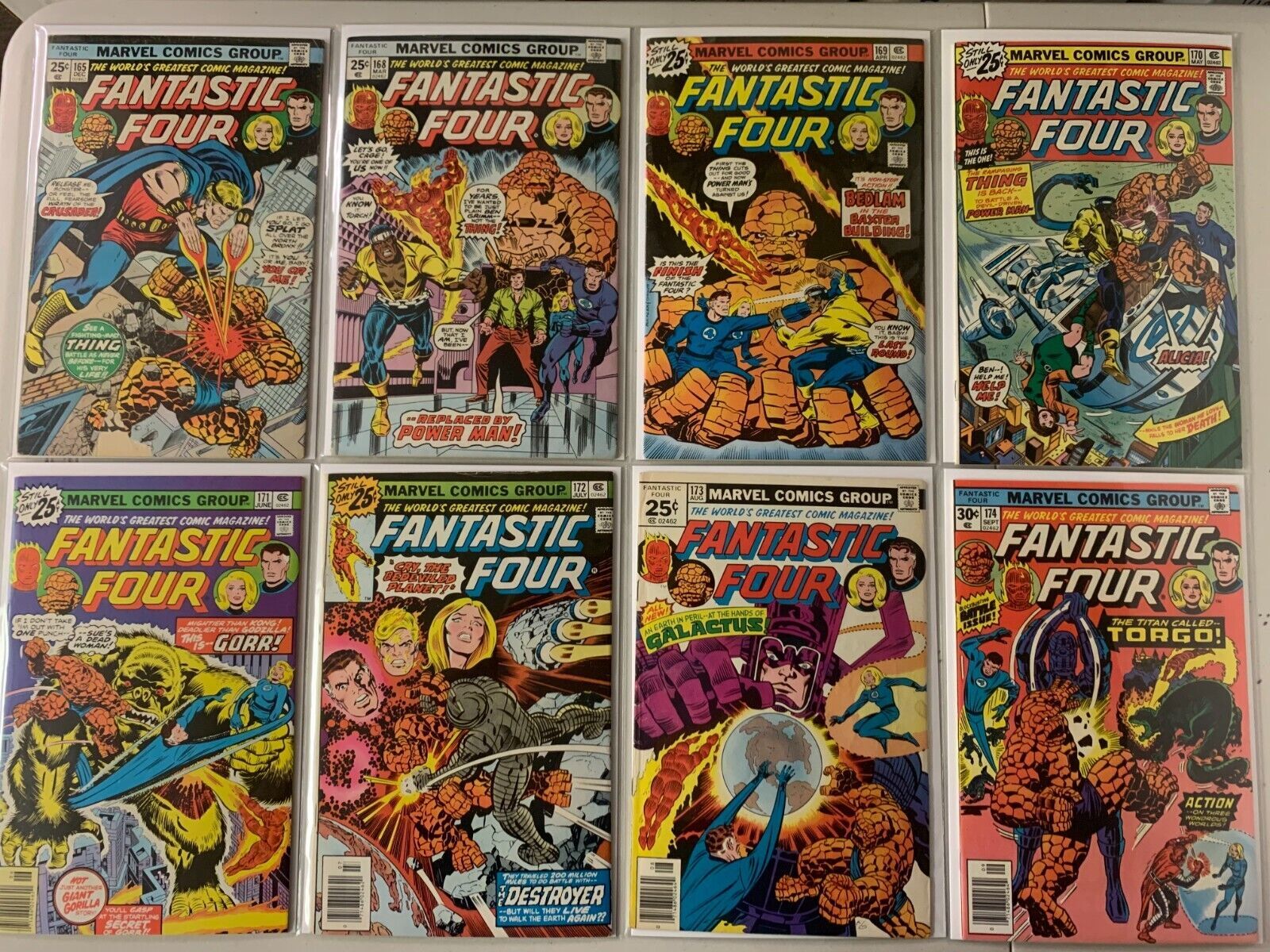 Grade: 6.0 FineFantastic Four Marvel Comics lot from: #154-187, 25 different books, avg 6.0 FN (1975-77).With 40 years of experience we realize the importance of getting your books through the mail in the condition promised to you, bagged & boarded where possible, wrapped using very thick cardboard stiffeners via First Class or Priority Mail. Shipping is $5.99 (we do combine shipping for an unlimited amount of singles or small sets (small sets are 4 books or less). Otherwise, we can ship up to 50 books (either singles or sets) for $14.99. Items may also be shipped via expedited mail for an extra charge if need be if you need something in a hurry. Orders ship within 2 business days, usually next business day. Please be sure to check our other exciting listings and send us your want list and we will do our best to fill it for you. Satisfaction Guaranteed:If you do not feel you have received good value for your money, we will gladly refund it with return of the item.